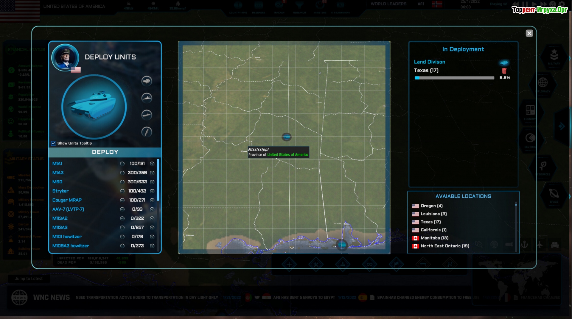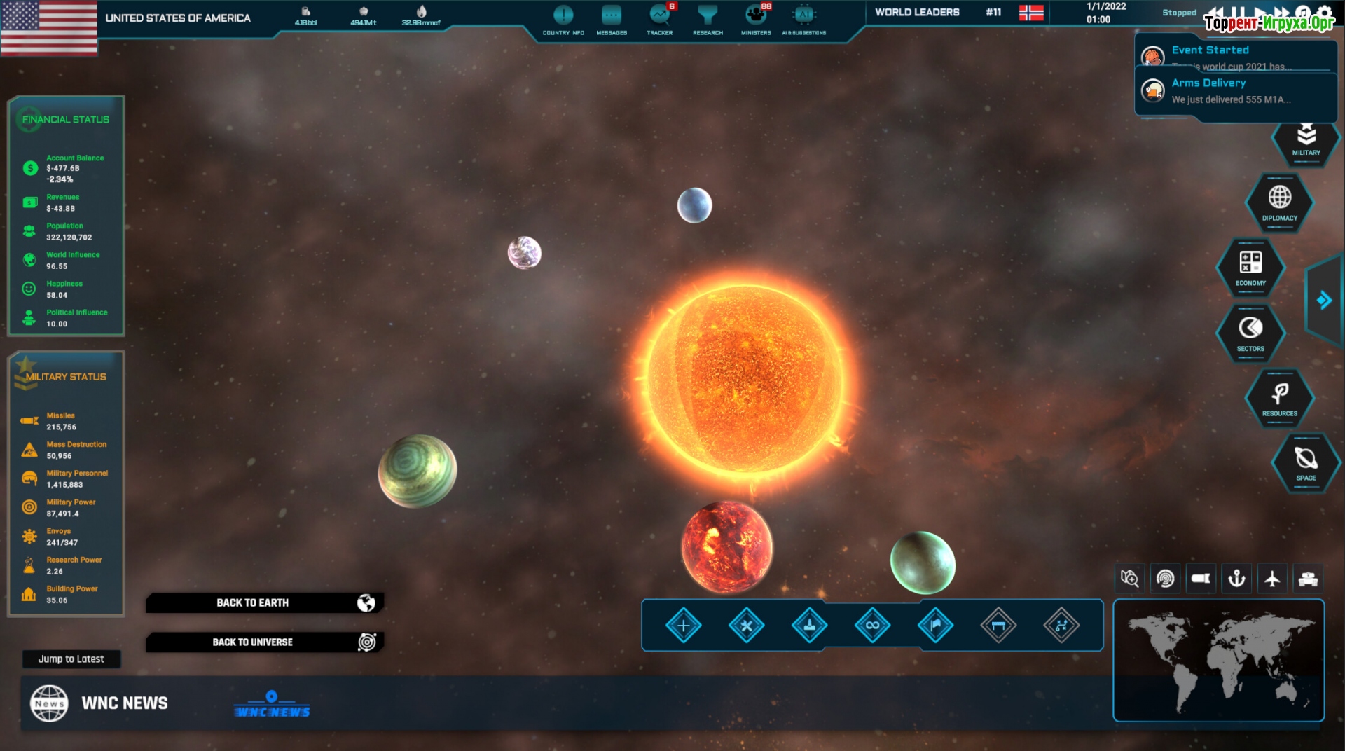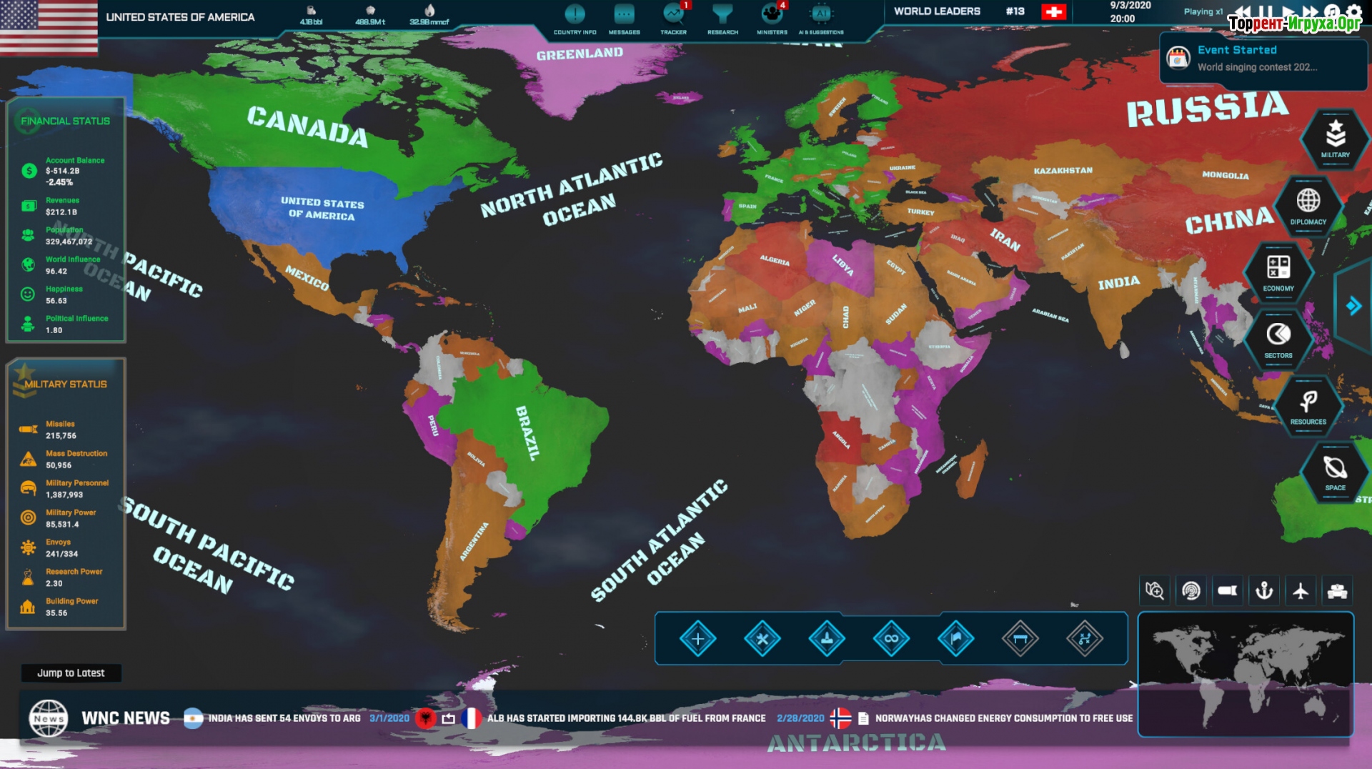 Торговля и контроль ресурсов занимают важное место в World Warfare & Economics: производите необходимые товары, наладьте обмен с другими странами и следите за удовлетворением потребностей населения для роста вашей экономики. Уделите внимание развитию армии — от производства оружия и тренировок до строительства баз и создания разведывательной сети по всему миру.