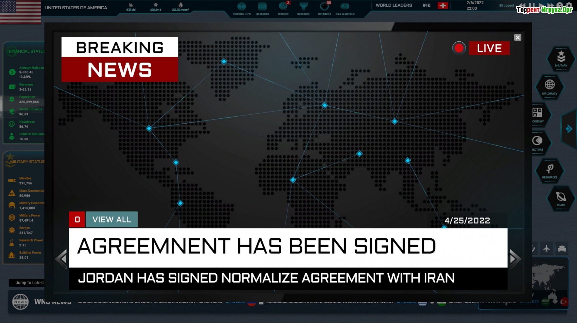 В этой игре вы можете применять законы, строить инфраструктуру и вести дипломатические переговоры, влияя на развитие одной из 220 доступных стран. Помимо военных действий, игра также охватывает управление ключевыми сферами, такими как образование, технологии, туризм и здравоохранение, что делает игровой процесс комплексным и многогранным.