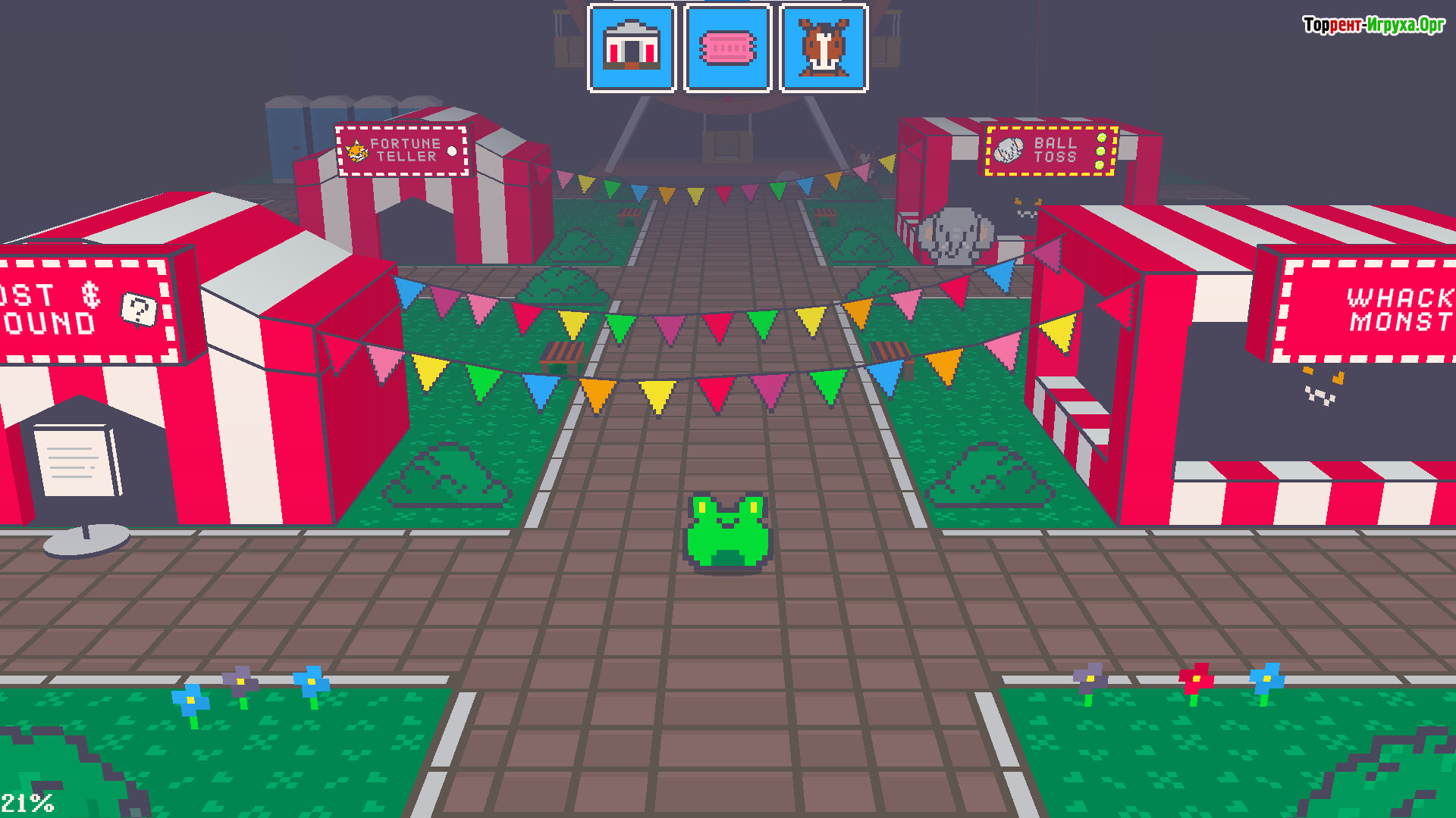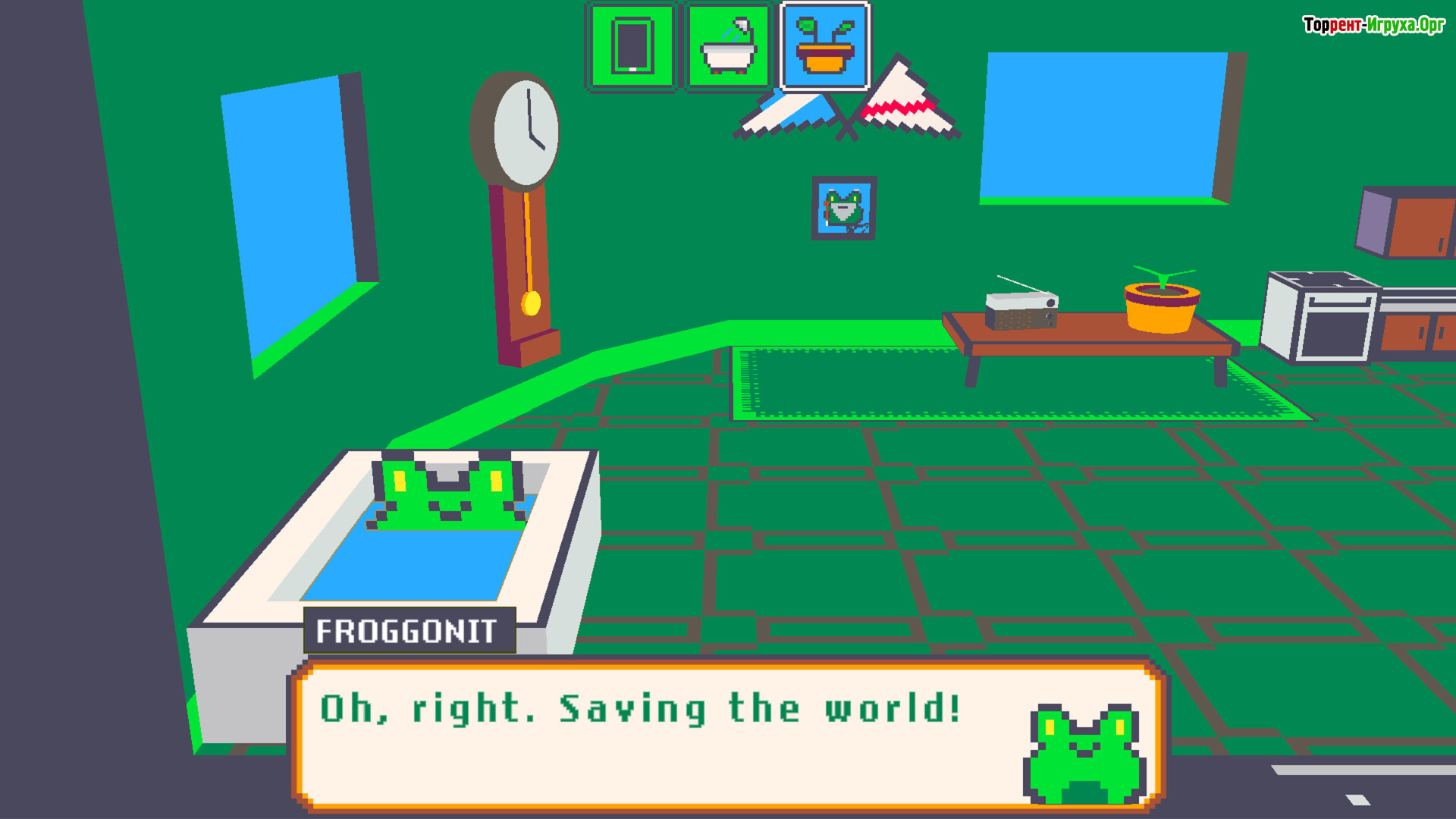 Исследование острова в FROGGONIT строится вокруг многочисленных комнат, скрывающих тайные проходы и увлекательные головоломки. Главный персонаж использует высокие прыжки и громкое кваканье, чтобы взаимодействовать с окружением и разблокировать доступ к новым локациям. Такое сочетание платформенных элементов делает геймплей динамичным и насыщенным.