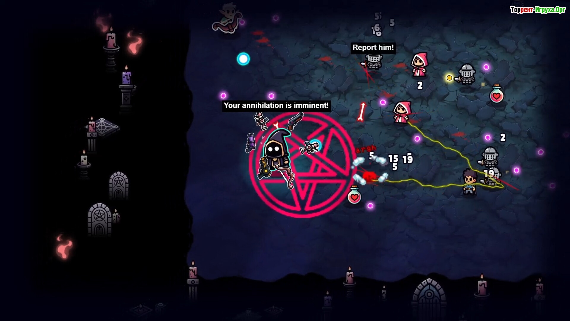 Особое внимание уделено сборке билдов — от призыва миньонов до комбинирования атакующих рун и эффектов, что открывает широкий простор для тактики. Кооперативный режим расширяет возможности командных стратегий, а пародийный арт с элементами чёрного фэнтези и сатиры добавляет уникальный стиль. Средняя продолжительность игровых сессий составляет 20–30 минут, насыщенных интенсивным экшеном и хаосом.