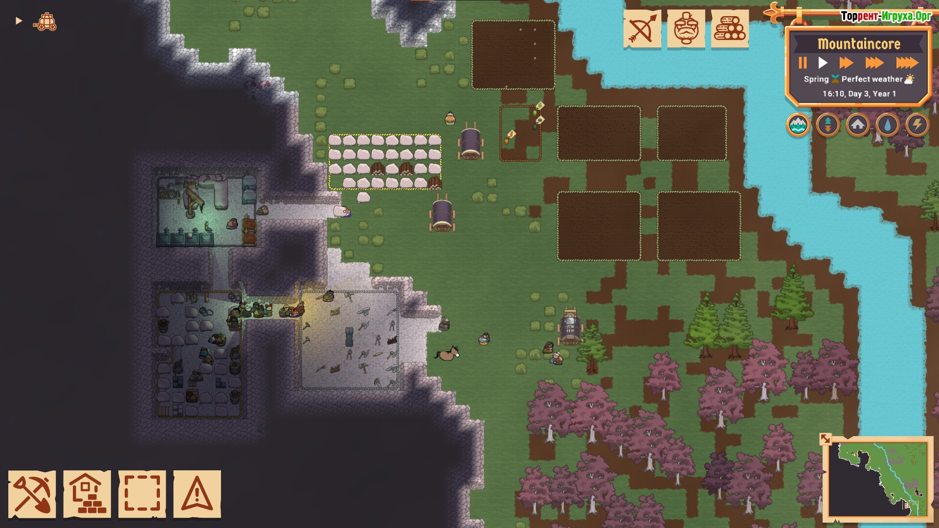 Mountaincore приглашает вас в захватывающее путешествие по диким землям вместе с умелыми гномами. Разработанная Rocket Jump Technology в 2023 году, игра предлагает увлекательный процесс строительства и развития живописной колонии в красочном фэнтези мире. Именно здесь вы сможете воплотить свои идеи в жизнь и привести свою общину к процветанию.