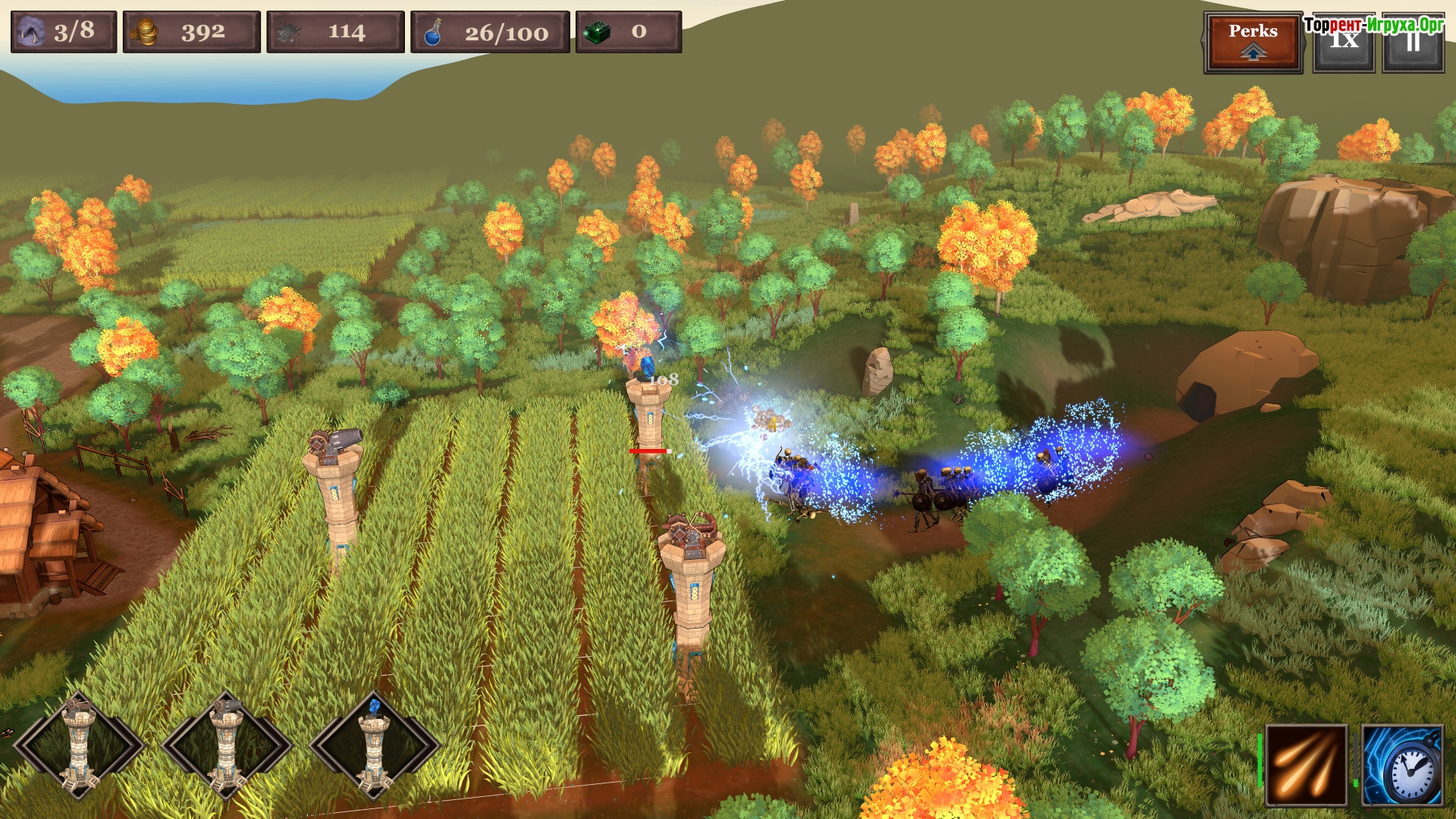 Каждая волна противников — от быстрых гоблинов до оживших скелетов и мощных боссов — ставит перед вами все более сложные задачи. Для успешной обороны необходимо продуманно размещать башни и грамотно сочетать разнообразные виды защиты с заклинаниями, чтобы остановить врагов и сохранить деревню в безопасности.