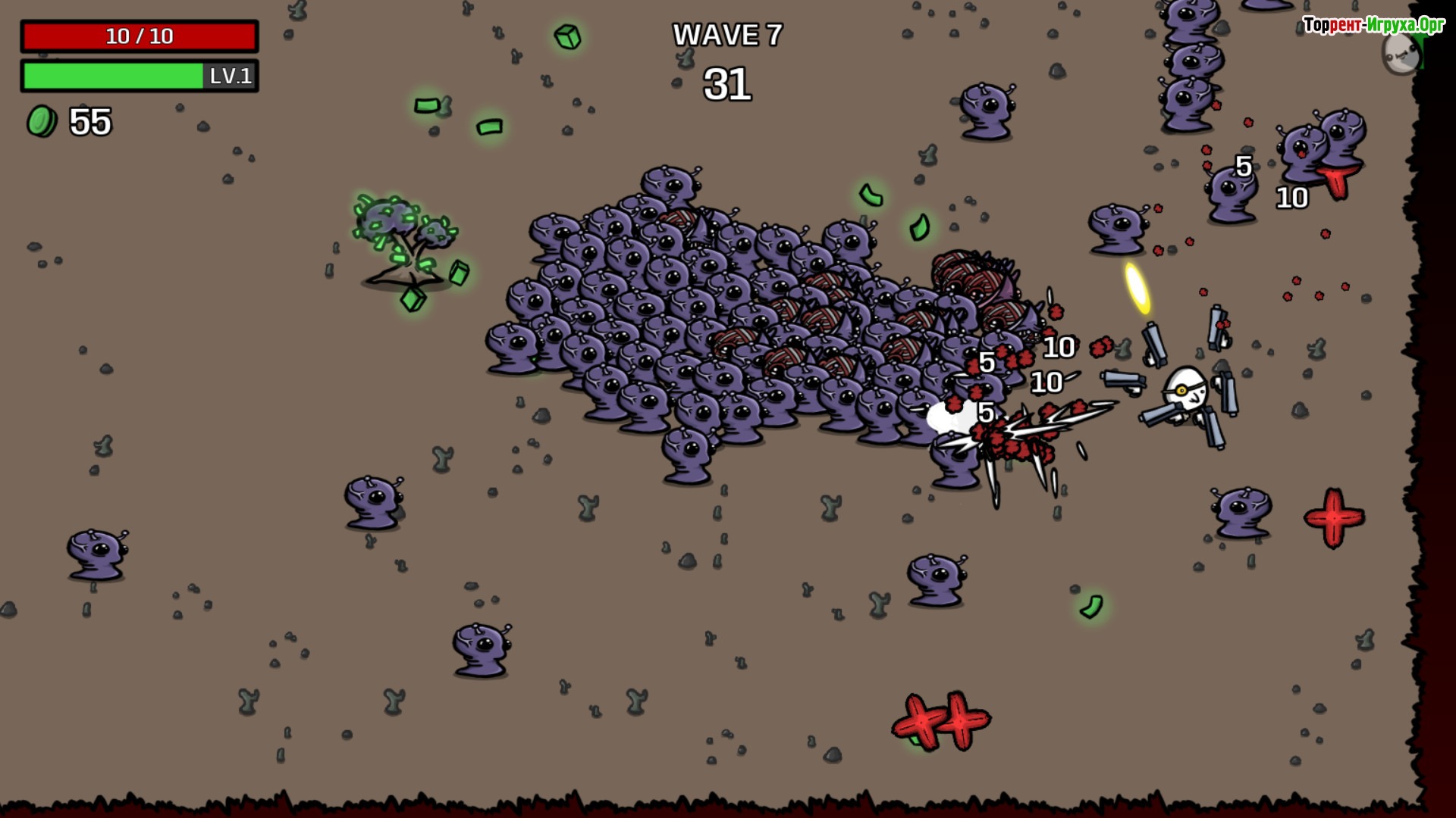 Brotato — динамичный шутер с элементами рогалика от разработчика Blobfish, выпущенный в 2023 году. В этой игре вы управляете необычным главным героем — картошкой по имени Бротато. Используйте разнообразное оружие, чтобы отражать наступление инопланетных захватчиков и выжить в сложных условиях.