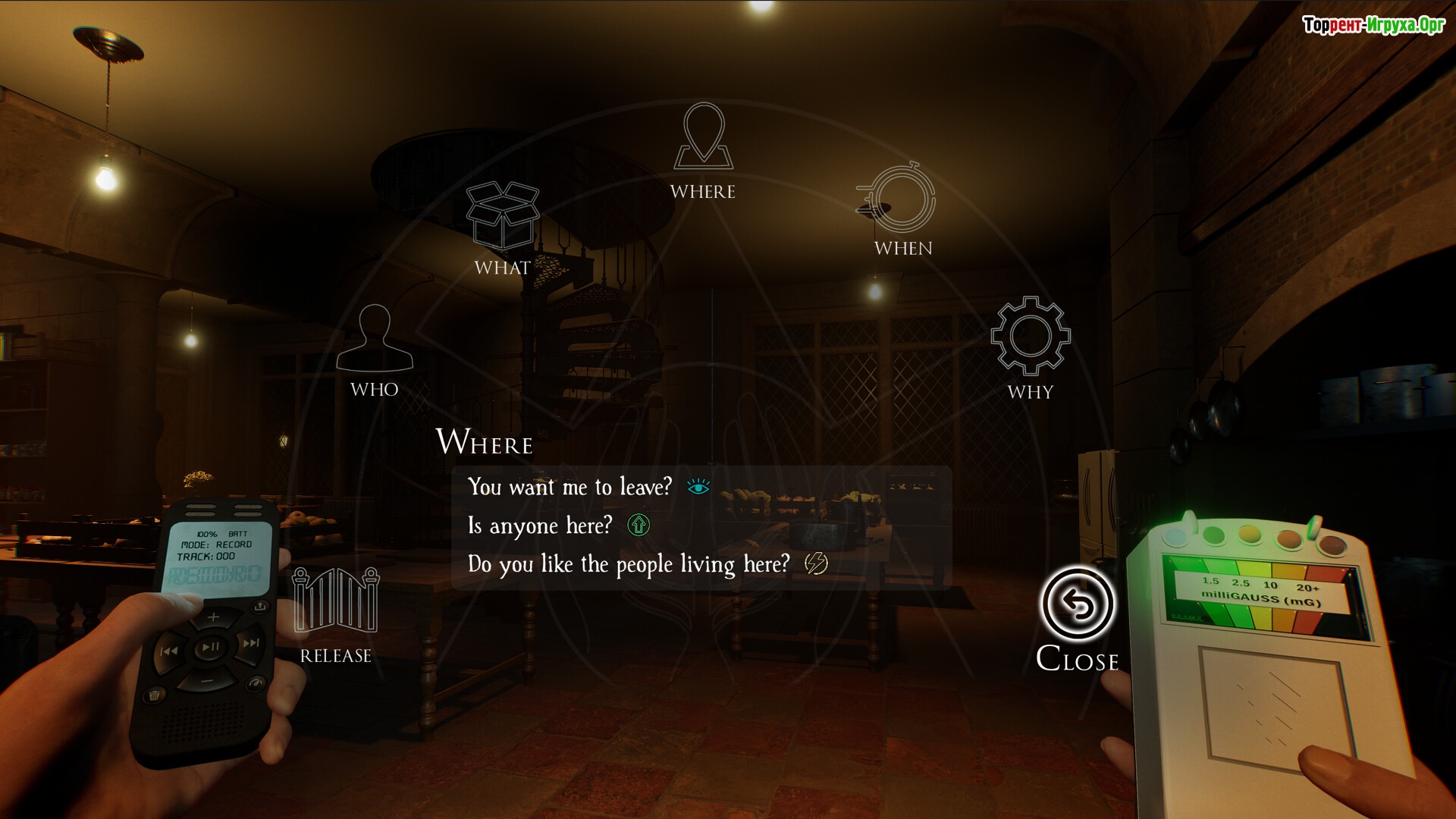 В процессе расследования старинного особняка вы будете применять профессиональное оборудование, такое как спектрографы, фотоловушки и датчики движения, чтобы фиксировать и анализировать поведение призрачных сущностей. Основной метод взаимодействия — провокация, которая требует точного и осторожного подхода, так как неверно выбранные стимулы могут исказить восприятие и повлиять на реальность вокруг.