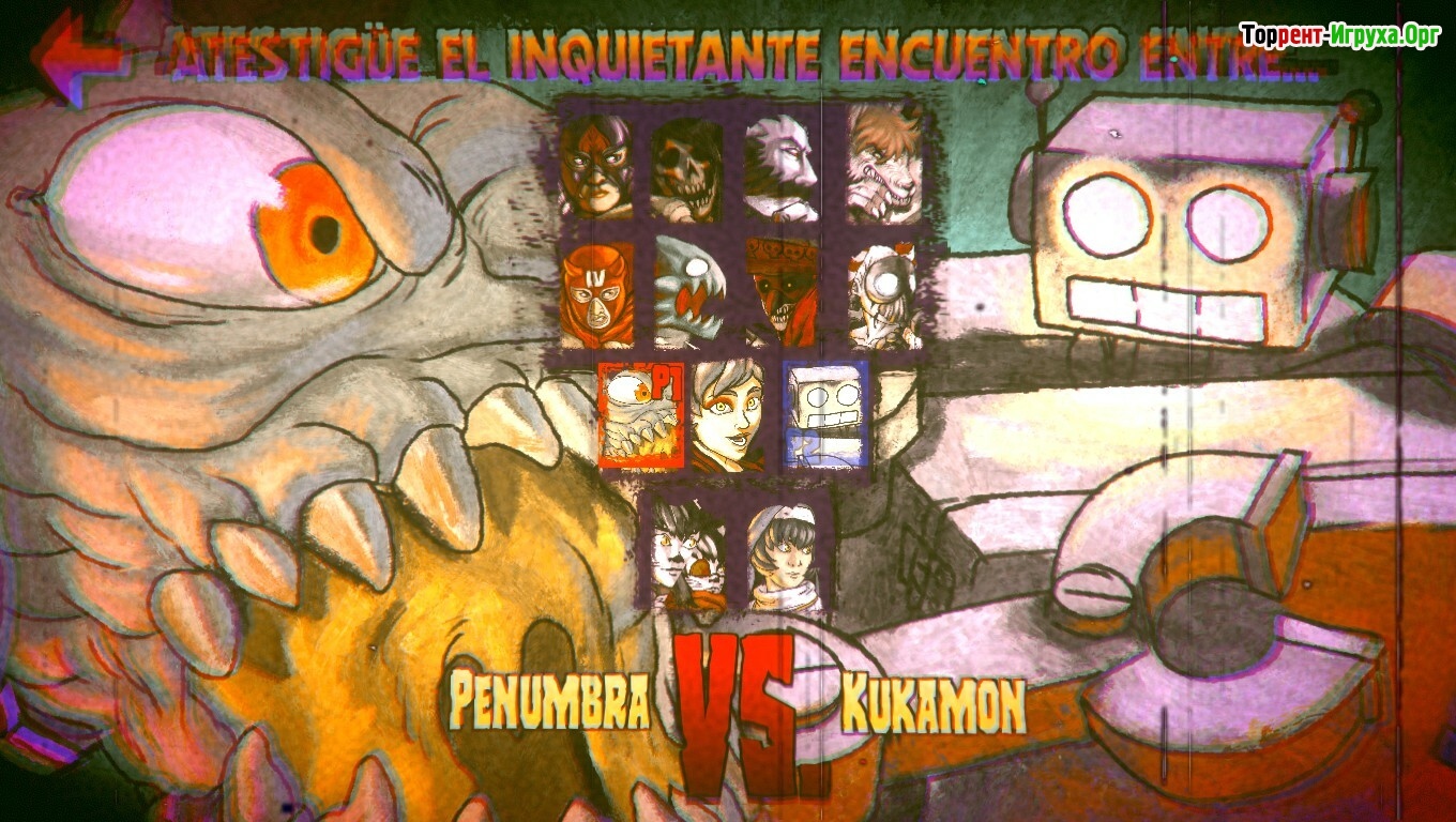 В этом ретро-экшене вы сможете выбрать персонажа из разнообразного списка мистических существ и отважных лучадоров, каждый со своим стилем боя и способностями. Управление построено на интуитивных механиках, схожих с классическими Smash Bros, где три кнопки отвечают за основные атаки, спецудары и защиту. Простота управления сочетается с глубиной боевой системы, которая раскрывается по мере освоения игры.