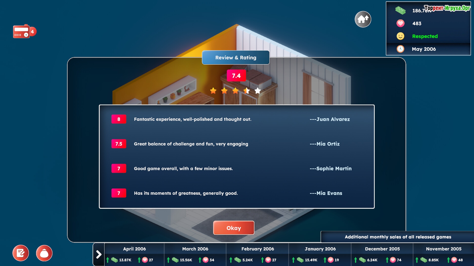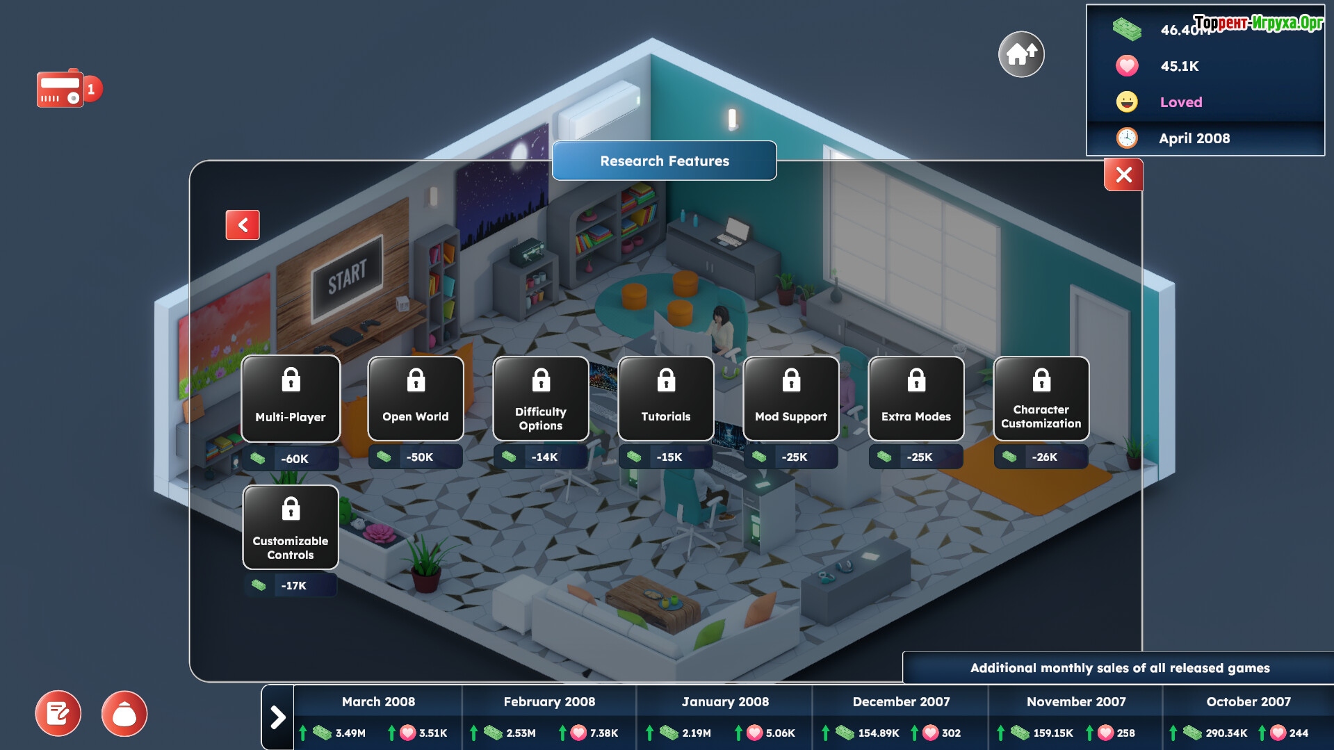 В этой игре вы сможете создавать и продавать свои игры, добиваясь признания и дохода. Погружайтесь в изучение современных технологий, расширяйте штат сотрудников и оборудуйте офис, контролируя финансовую сторону бизнеса, включая налоги, зарплаты и кредиты. Вас ждёт насыщенное соревнование среди более 5000 компаний, где каждый шаг важен для роста вашей студии.
