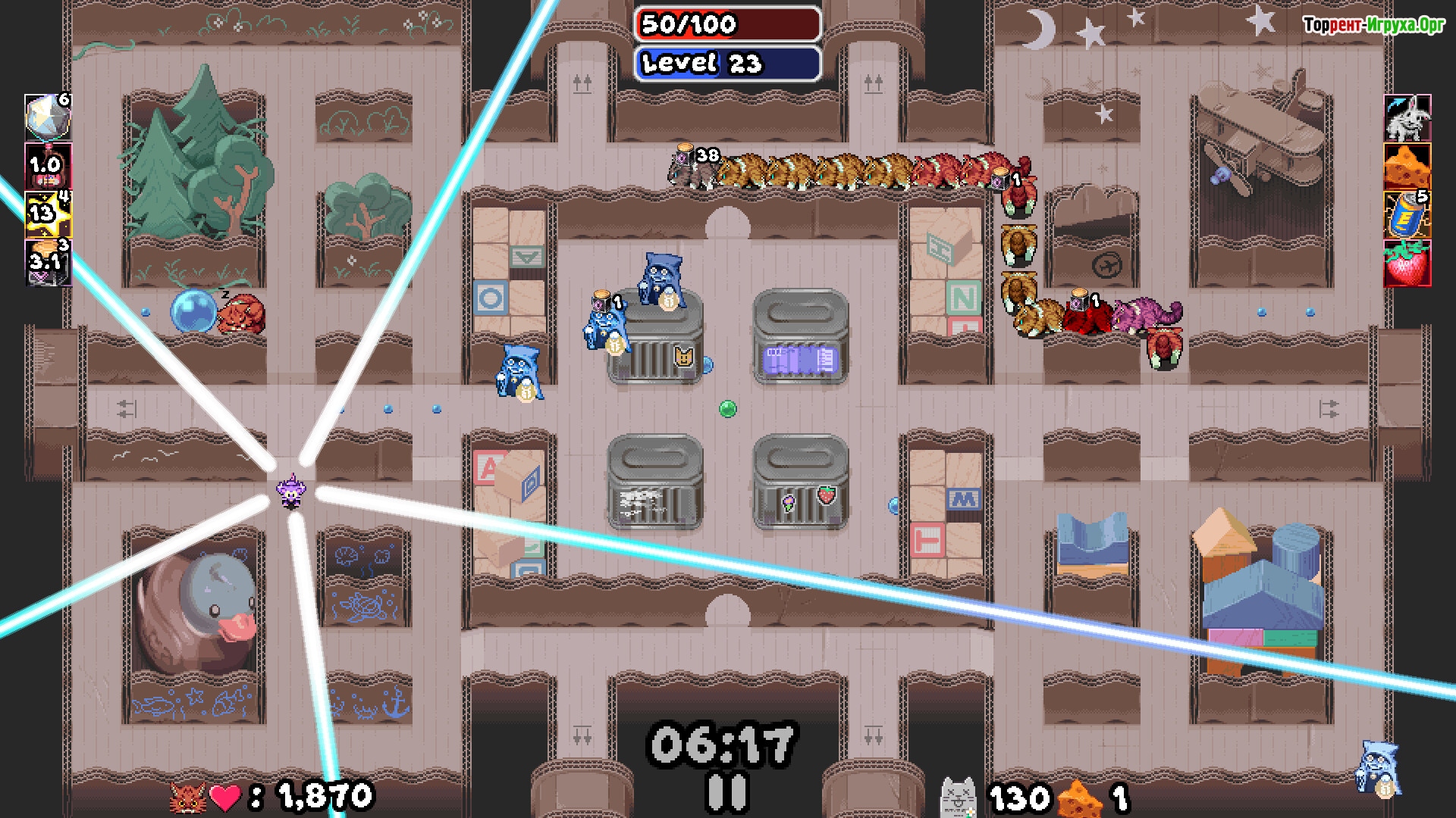 Maze Mice — это уникальный роуглайт в жанре Bullet Heaven от разработчика TrampolineTales, выпущенный в 2025 году. В этой игре ваша способность управлять временем становится ключевым преимуществом. Каждый ваш шаг запускает движение и вызывает хаос, а правильное использование контроля времени позволит держать ситуацию под полным контролем и сохранять хладнокровие в самых напряжённых моментах.