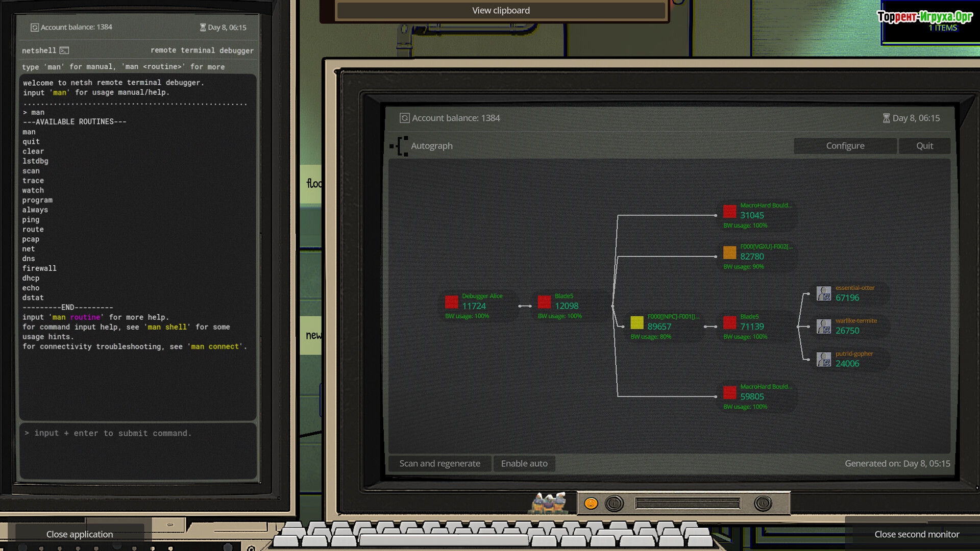 Игра отличается продуманным терминальным интерфейсом, который позволяет работать через командную строку: проверять конфигурации, выявлять неполадки и устанавливать необходимые серверные приложения. Такой подход погружает в атмосферу настоящего IT-специалиста и помогает почувствовать всю глубину сетевого администрирования.