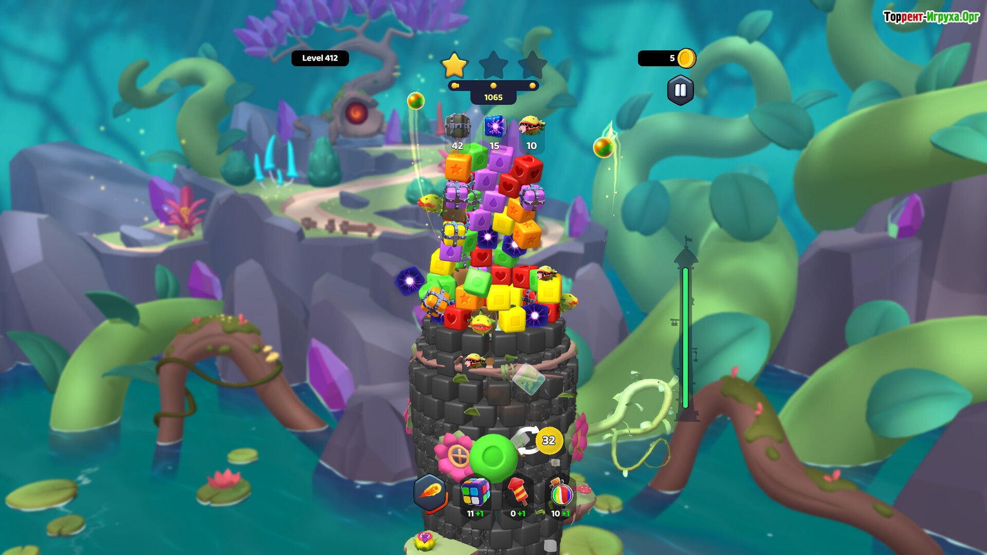 Игра выделяется разрушением башен на основе умело подобранных цветовых цепочек и реалистичной физики. Интересный геймплей с элементами планирования, постепенно растущая сложность и оригинальные игровые элементы сочетаются с приятной графикой и спокойным музыкальным сопровождением, что создаёт комфортную атмосферу для всех поклонников жанра.