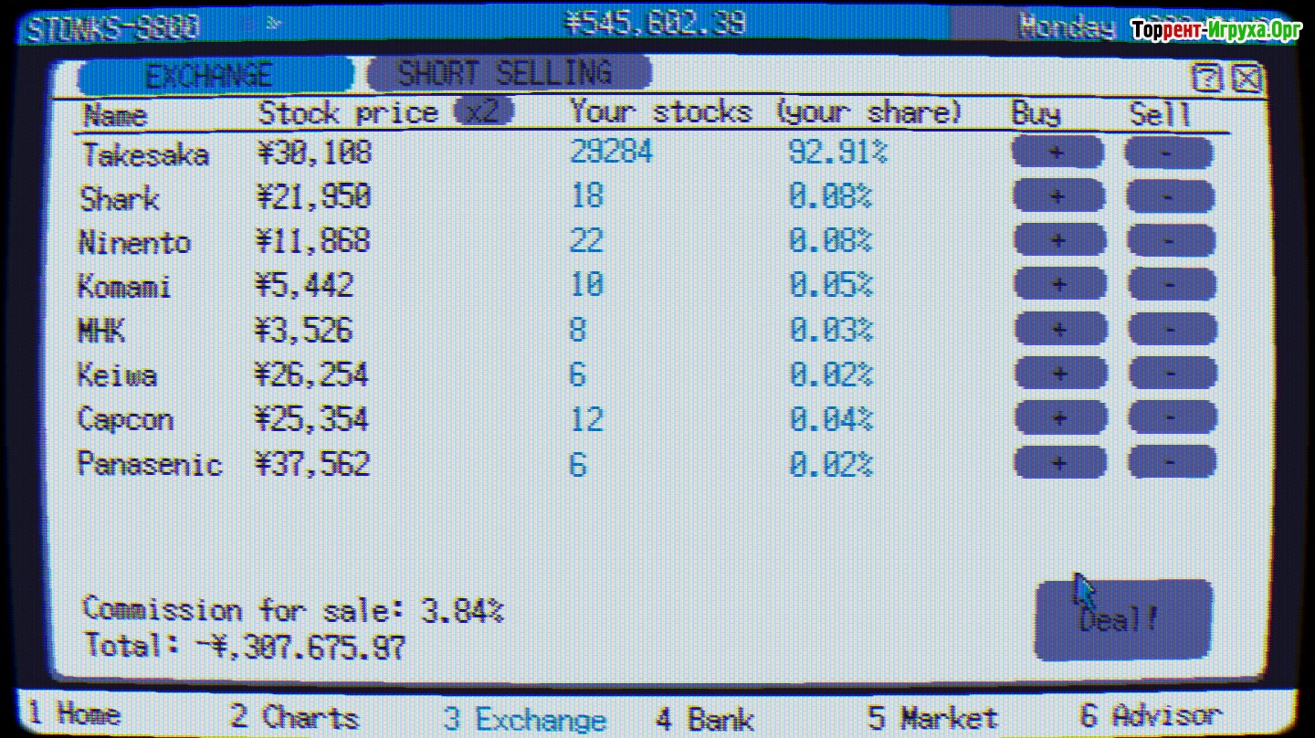 Основная задача – следить за движением курсов и своевременно покупать или продавать ценные бумаги, чтобы не упустить выгодные возможности. Реалистичная экономика требует продуманного подхода к торговле, а управление собственным здоровьем становится важной частью игрового процесса, поскольку переутомление может негативно сказаться на ваших решениях.