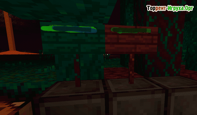 Нововведениями также стали таблички в багровом и искажённом стилях, обладающие стойкостью к огню и позволяющие создавать заметные и долговечные указатели в мире Майнкрафт. Среди декоративных элементов выделяется искажённый блок адского нароста, который добавляет разнообразия в оформление локаций и требует бережного использования из-за своей редкости.