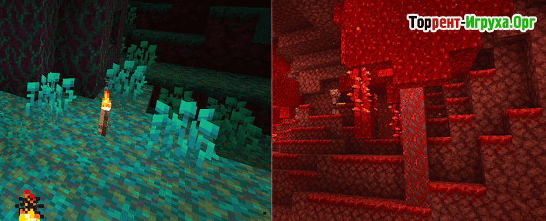 Особое место в обновлениях занимают багровые и искажённые ножки грибов, а также доски и корни, которые не горят и обладают уникальными внешними характеристиками. Они позволят создавать огнеупорные конструкции и расширять возможности кулинарии за счёт новых ингредиентов.