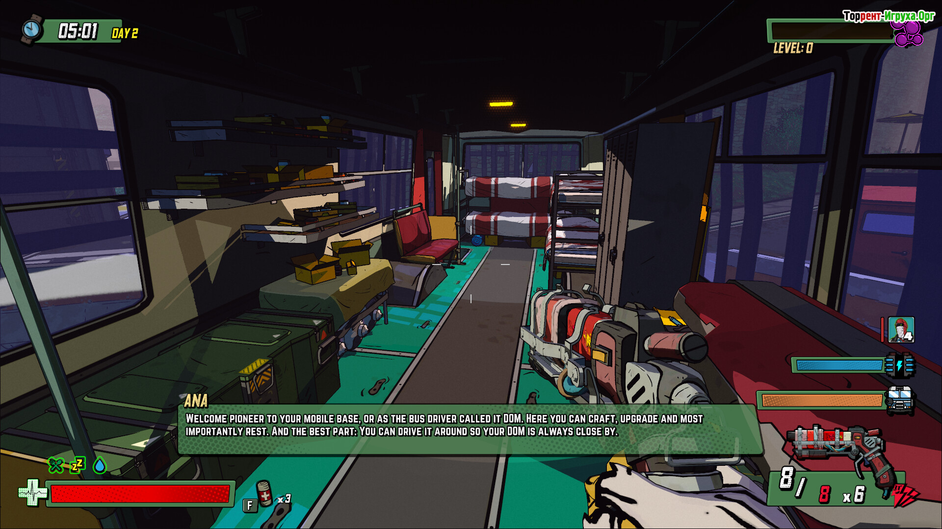 Игровой процесс Skopje '83 сочетает в себе элементы классического рогалика и стиль комикса, предоставляя полностью открытый мир для исследования. Вы будете постоянно улучшать своё оружие с помощью чертежей, исследовать мрачные улицы и подстраиваться к меняющимся условиям. Надежная база — передвижной автобус — всегда под рукой, чтобы дать передышку враждебному окружению, в котором каждый новый заход меняет расположение врагов и добычи.