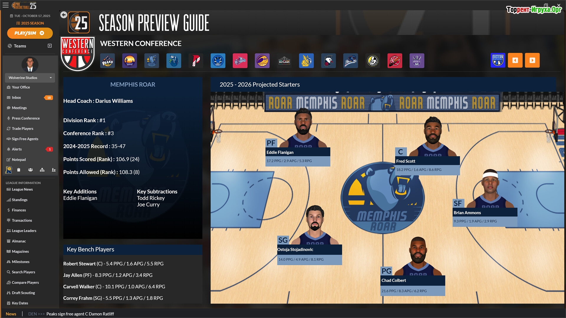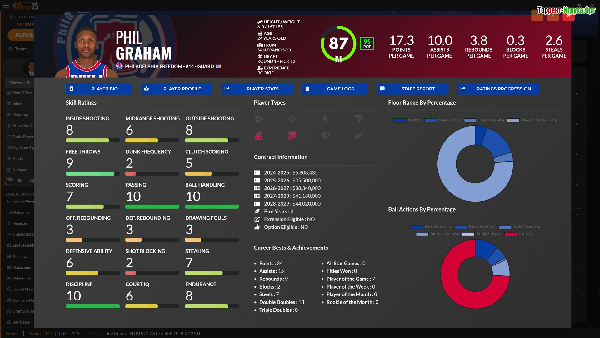 Draft Day Sports: Pro Basketball 2025 от Wolverine Studios приглашает вас примерить на себя роль генерального менеджера баскетбольной команды. В этом симуляторе вам предстоит принимать ключевые решения — проводить драфт, обмены, заключать контракты со свободными агентами и управлять заменами. Ваша задача — построить сильную команду и вывести её к вершинам славы, создав настоящую спортивную династию.