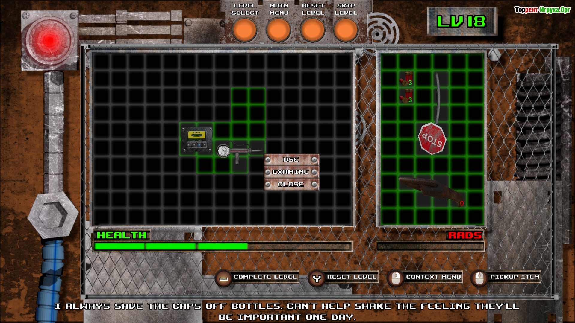 Игра предлагает 80 тщательно проработанных уровней с постепенным повышением сложности, где рюкзачный тетрис становится основным инструментом вашей логистической тактики. Более 50 различных предметов с уникальными эффектами придумывают неожиданные задачи, а лёгкий чёрный юмор и неожиданные элементы радиации делают игровой процесс по-настоящему увлекательным и оригинальным.