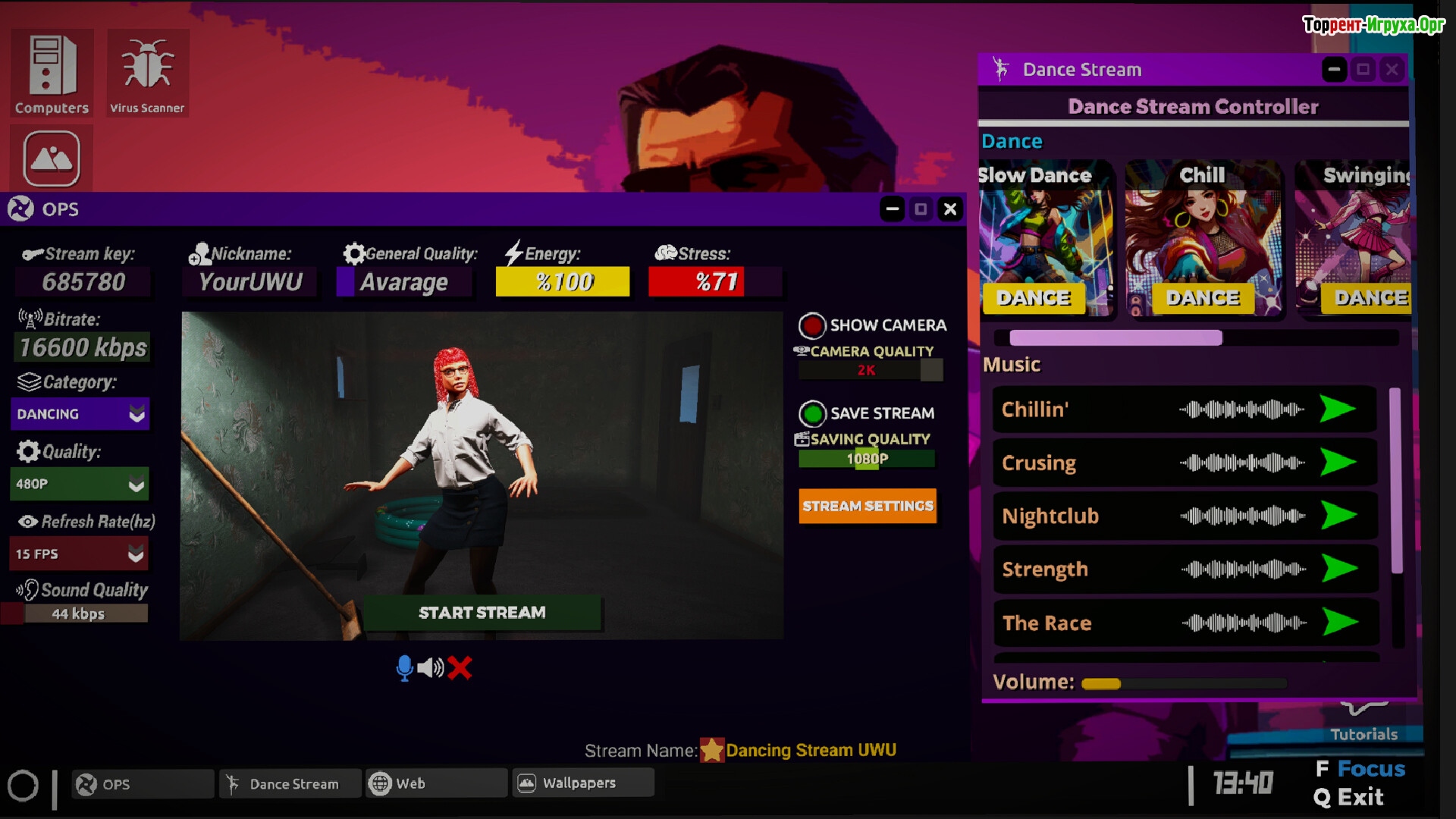 С самого начала вам предстоит развивать своего виртуального стримера, начиная с минимального оборудования и постепенно обновляя процессор, видеокарту и камеру. Важным аспектом игры является поддержание стабильного соединения с интернетом, что критично для успешных трансляций. Постепенно, выполняя задания и грамотно инвестируя заработок, получится продвигаться к званию известного блогера и строить карьеру в мире интерактивного видео.