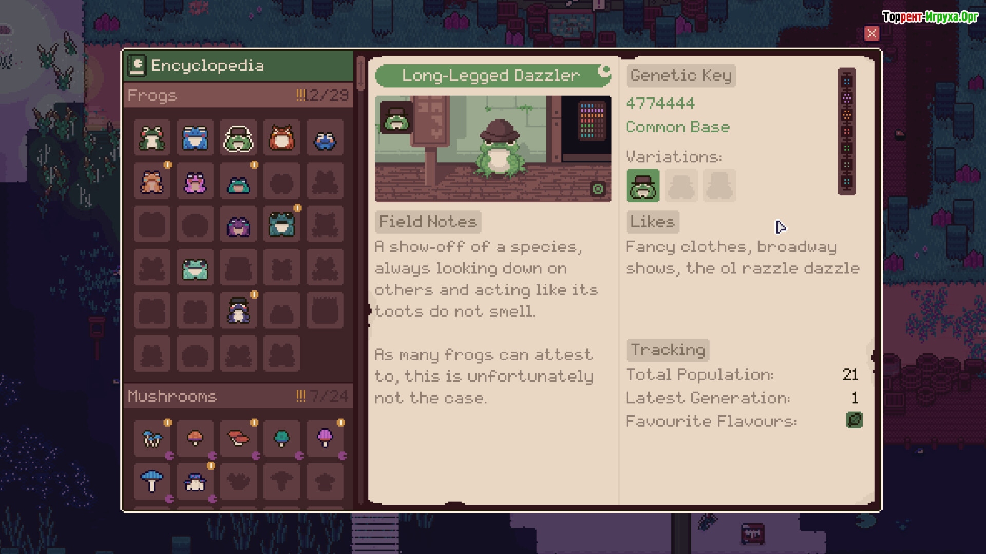 Погружаясь в мир природы, вам предстоит восстановить исчезающие виды с помощью тщательных генетических исследований. Игра сочетает в себе сложные головоломки, где задача — не только понять особенности генетики, но и наладить баланс в экосистеме. Создавайте новые виды лягушек, открывайте необычные механики и исследуйте все грани природы, чтобы оживить пруд и его окрестности.