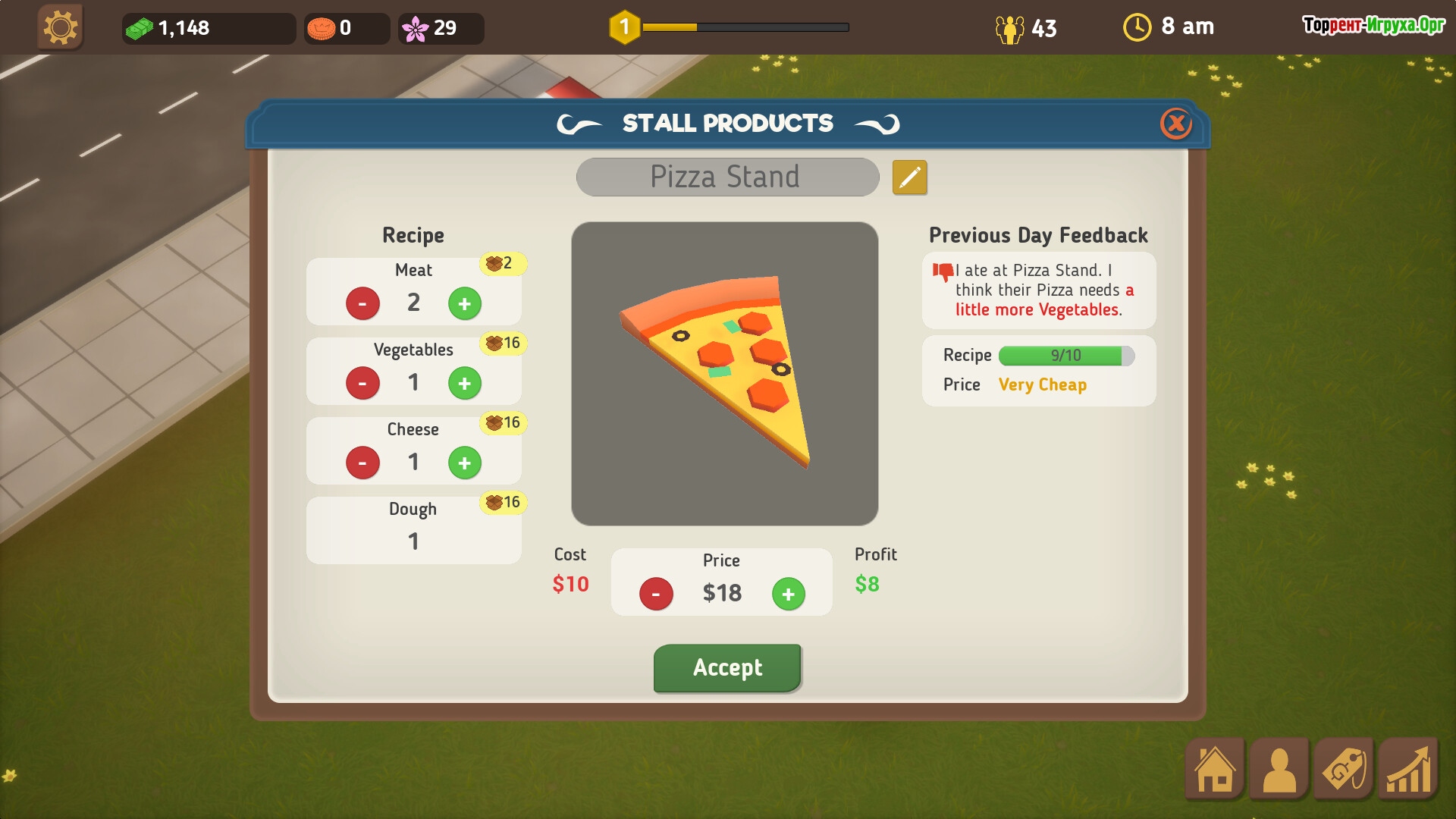 Оптимизируйте рецепты, чтобы удовлетворить вкусы разнообразных посетителей и успешно реагировать на динамичные события — будь то фестивали или перемены в трендах. Управляйте персоналом: поварами, уборщиками, аниматорами и менеджерами, улучшая их профессиональные навыки и повышая эффективность работы парка.