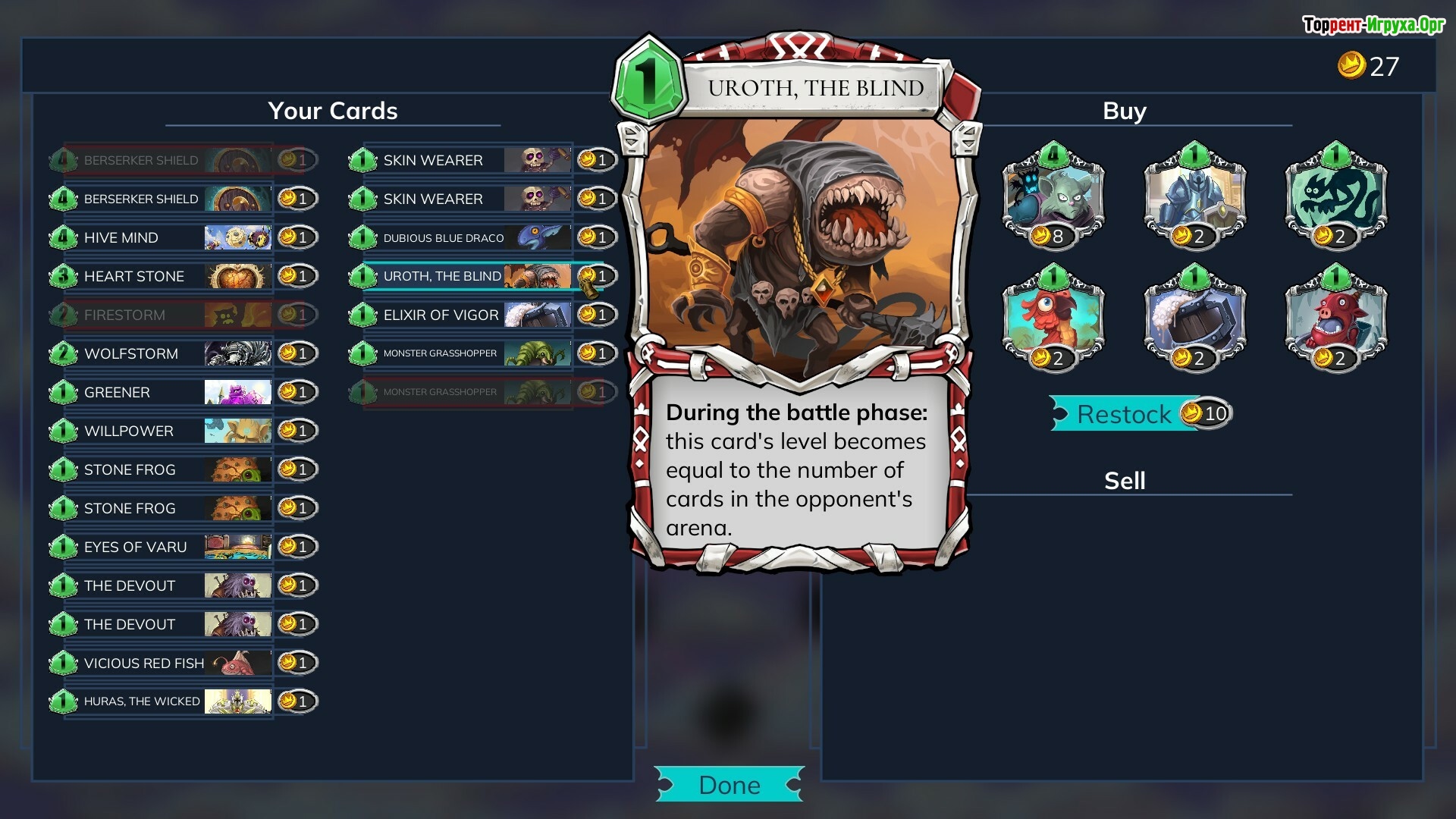 Игровой процесс привлекает глубокой тактической составляющей и практически бесконечным разнообразием комбинаций. Уникальная система бесконечного слияния карт освежает жанр и позволяет создавать мощные комбо-атаки с использованием особых умений карт. Благодаря этому каждая партия становится динамичной и наполненной напряжёнными моментами, характерными для карточных игр.