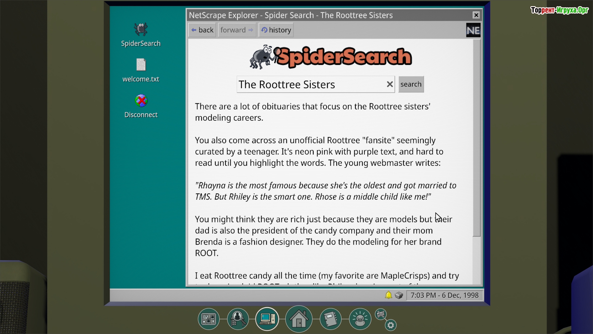 Версия The Roottrees are Dead, доступная на Steam, отличается улучшенным интерфейсом, а также обновлённой музыкой и звуковым сопровождением, что значительно повышает уровень погружения и удобства в игровой процесс. Эта игра сочетает в себе элементы ретро-интерфейса и стилистику старого интернета, создавая особую атмосферу для поклонников жанра.