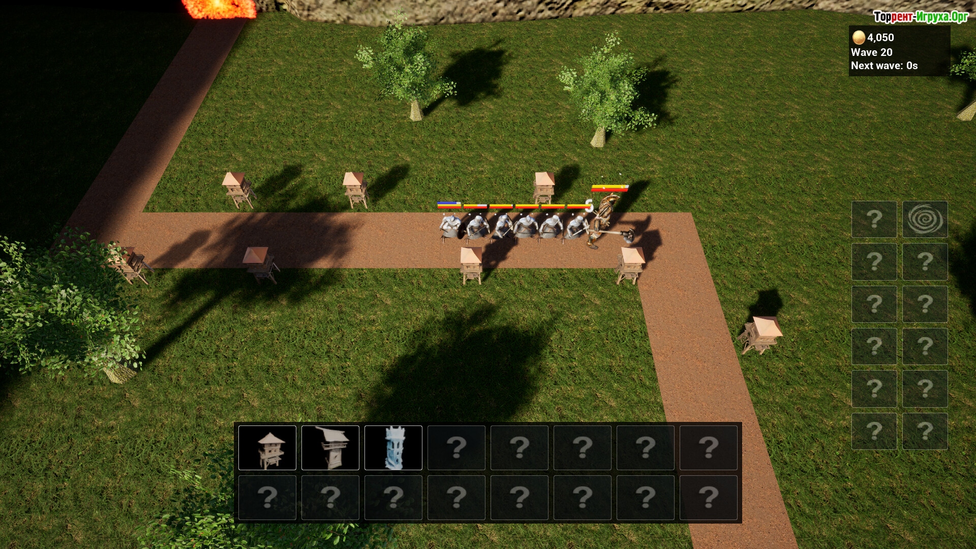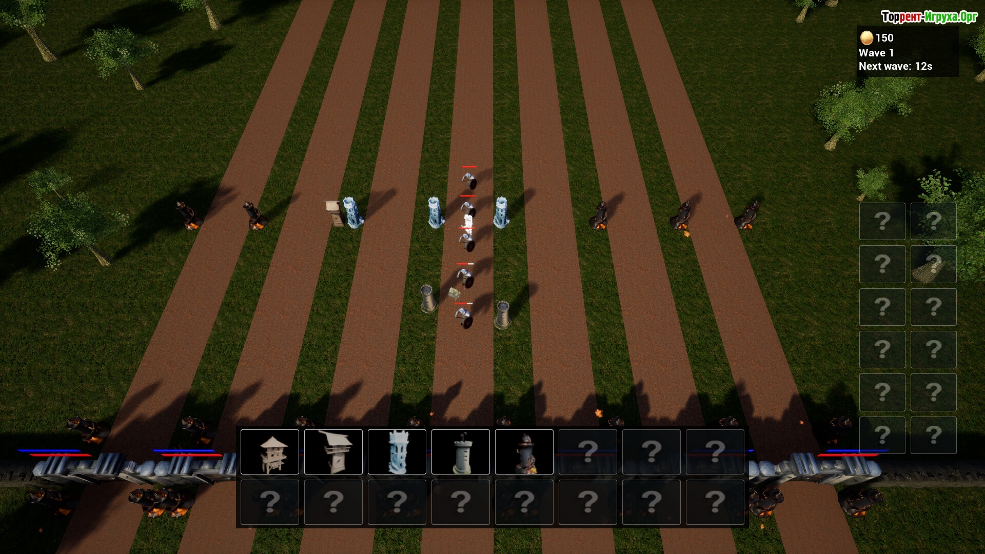 Распределяйте защитные башни по полю битвы и улучшайте их, чтобы справиться с усиленными противниками. В арсенале представлены различные виды башен — от мощных баллист и огненных ловушек до магических тотемов и катапульт, каждую из которых нужно применять с учетом особенностей врага.