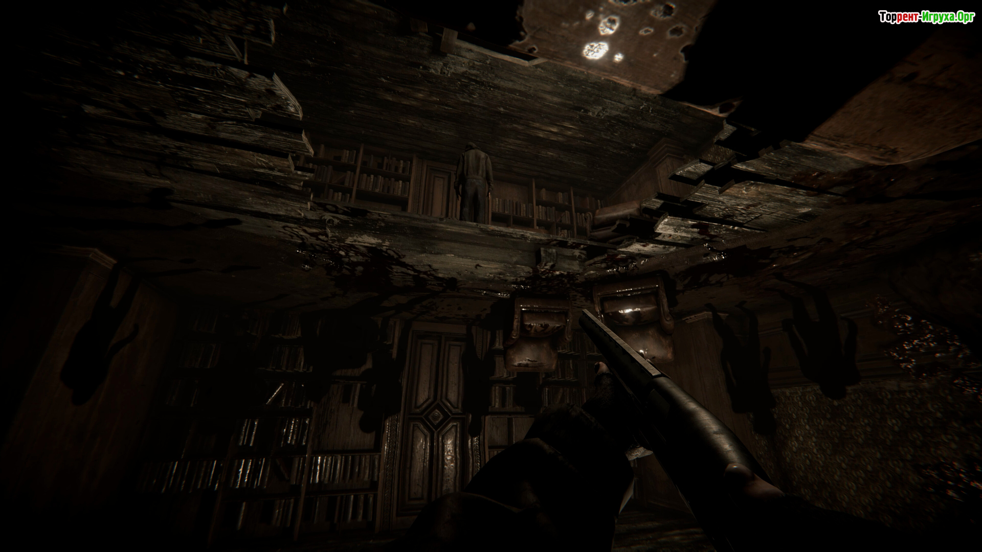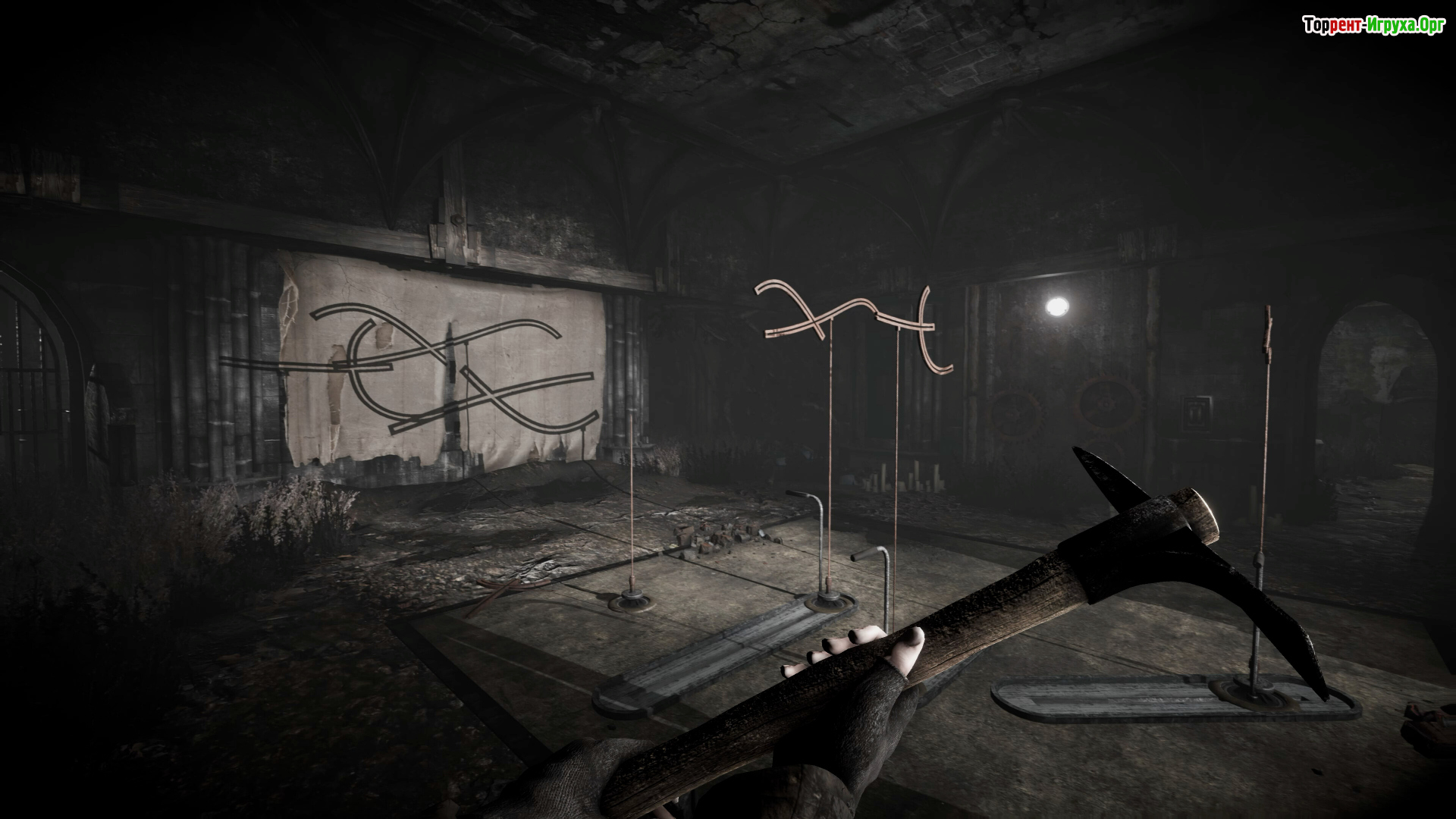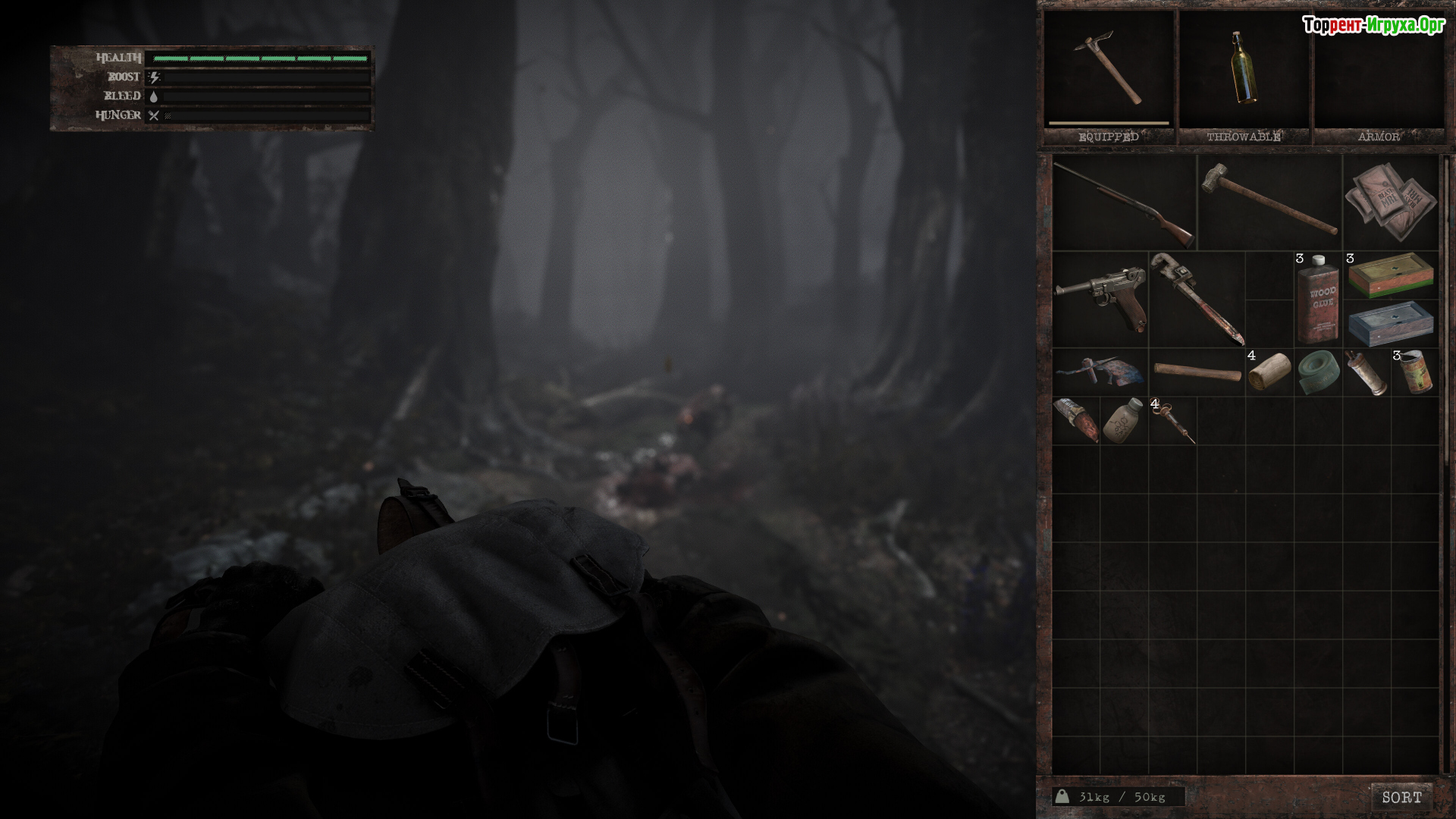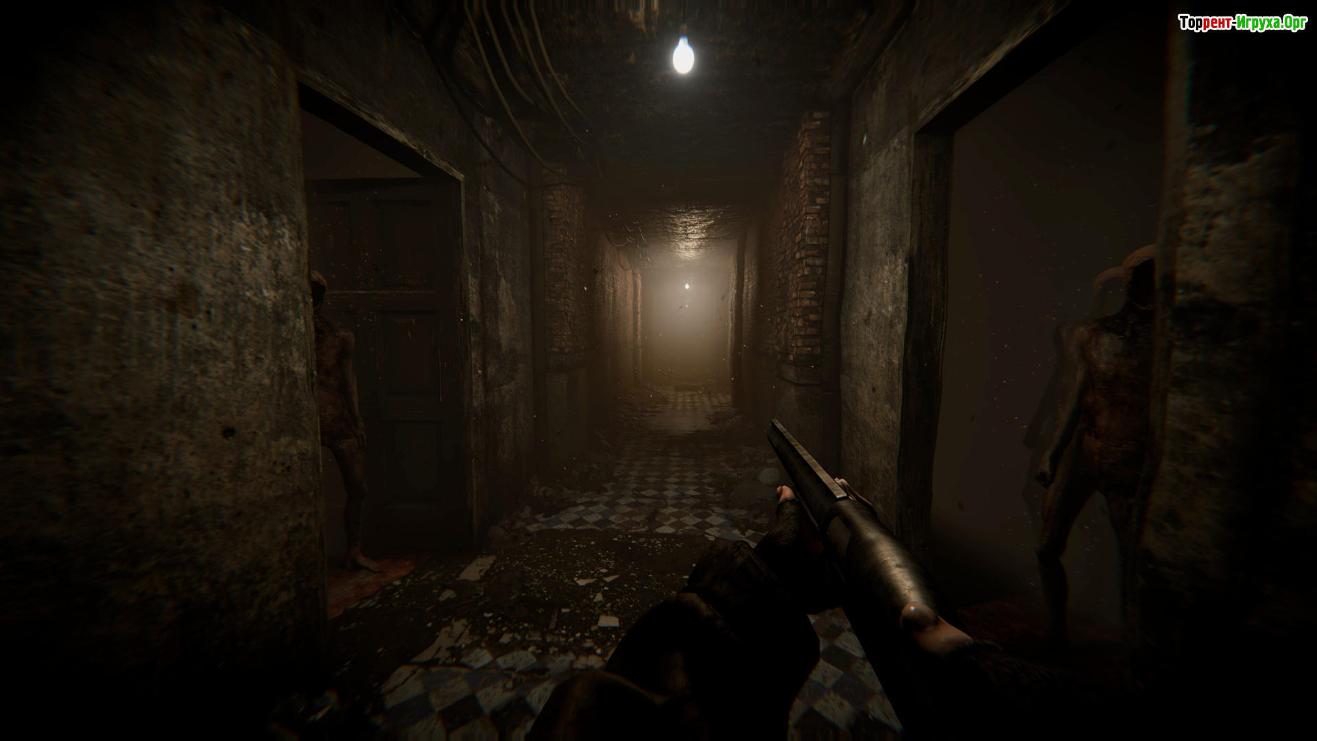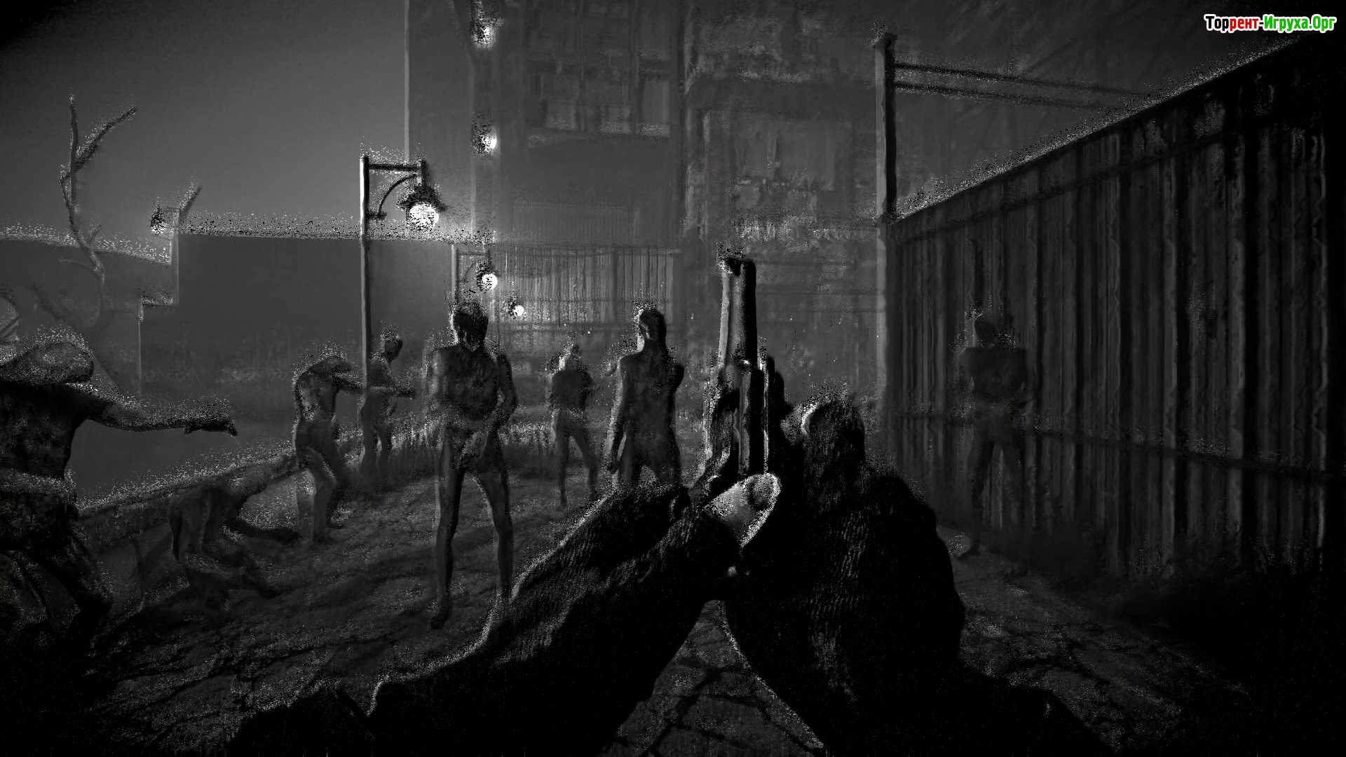 По сценарию тоже такое себе - чел мотается по заброшке, ширяется шприцами с неясным содержимым (это типа восстанавливает хп), а также лечится водкой и вискарём. Питается мясом трупов и гнилой едой, параллельно закидывась мутными колёсами, из-за которых он ловит явные галюны (стены из живых трупов, руки из стен и всё такое).