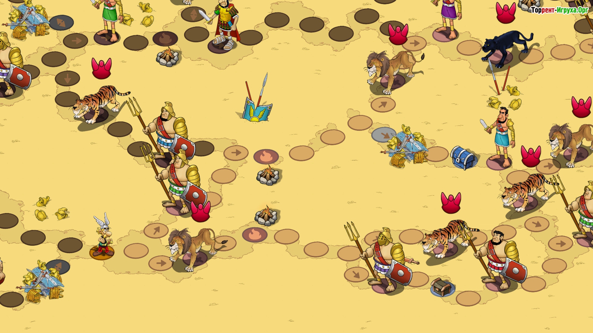 Игровые уровни впечатляют яркими, детализированными локациями, где придется решать увлекательные головоломки и преодолевать опасные ловушки. Только проявив мастерство и смекалку, удастся обойти заклятых врагов — римских солдат и других противников на пути героев.