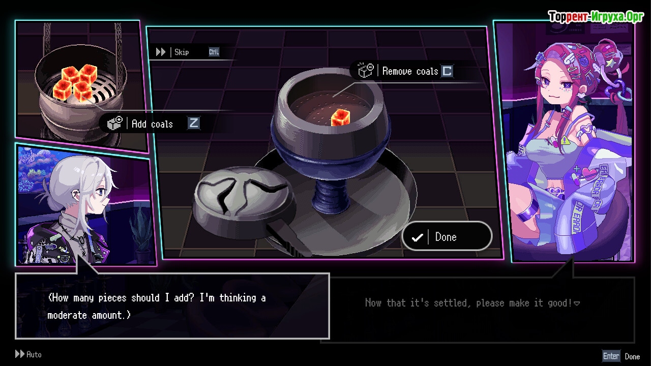 Сюжет игры насыщен драматизмом: у главного героя диагностирована смертельная болезнь, что придаёт его истории особую глубину и мотивирует Тори Сумико устроиться на работу в кальянную. Прохождение занимает около десяти часов, за которые вы сможете открыть разные концовки, зависящие от выбора и рецептов кальяна, влияющих на героинь. Это придаёт игре динамичность и реиграбельность.