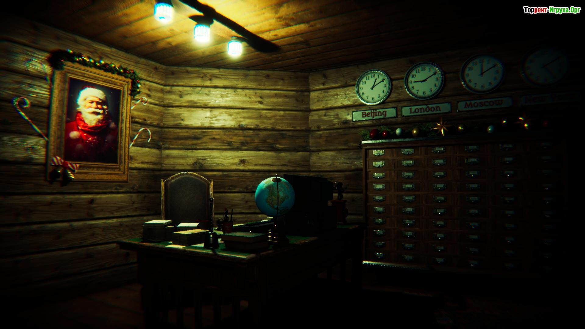 Игрок попадает в зловещее пространство, где традиционные символы Рождества приобретут зловещие формы. Яркие гирлянды освещают следы насилия, мастерская наполнена странными механизмами, а образы помощников Санты скорее пугают своим равнодушием, чем создают ощущение уюта. В этой искажённой новогодней мифологии каждая деталь погружает в глубины темного повествования, разрушая привычный образ волшебника.