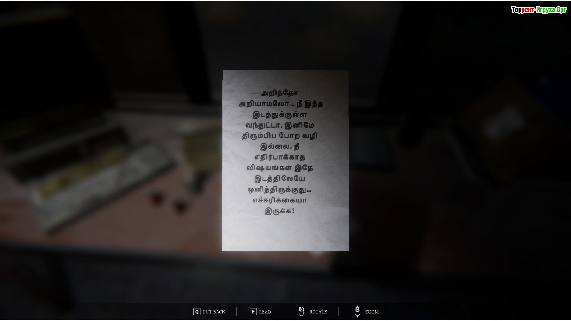 Игра погружает в атмосферу, подкреплённую тамильскими диалогами и записками, которые раскрывают сюжет и добавляют глубины происходящему. Головоломки требуют внимательного осмысления окружения, а продуманный звуковой дизайн поддерживает напряжение, превращая каждый шаг в испытание. Опасность здесь ощущается через атмосферное напряжение, а не через привычный экшен.
