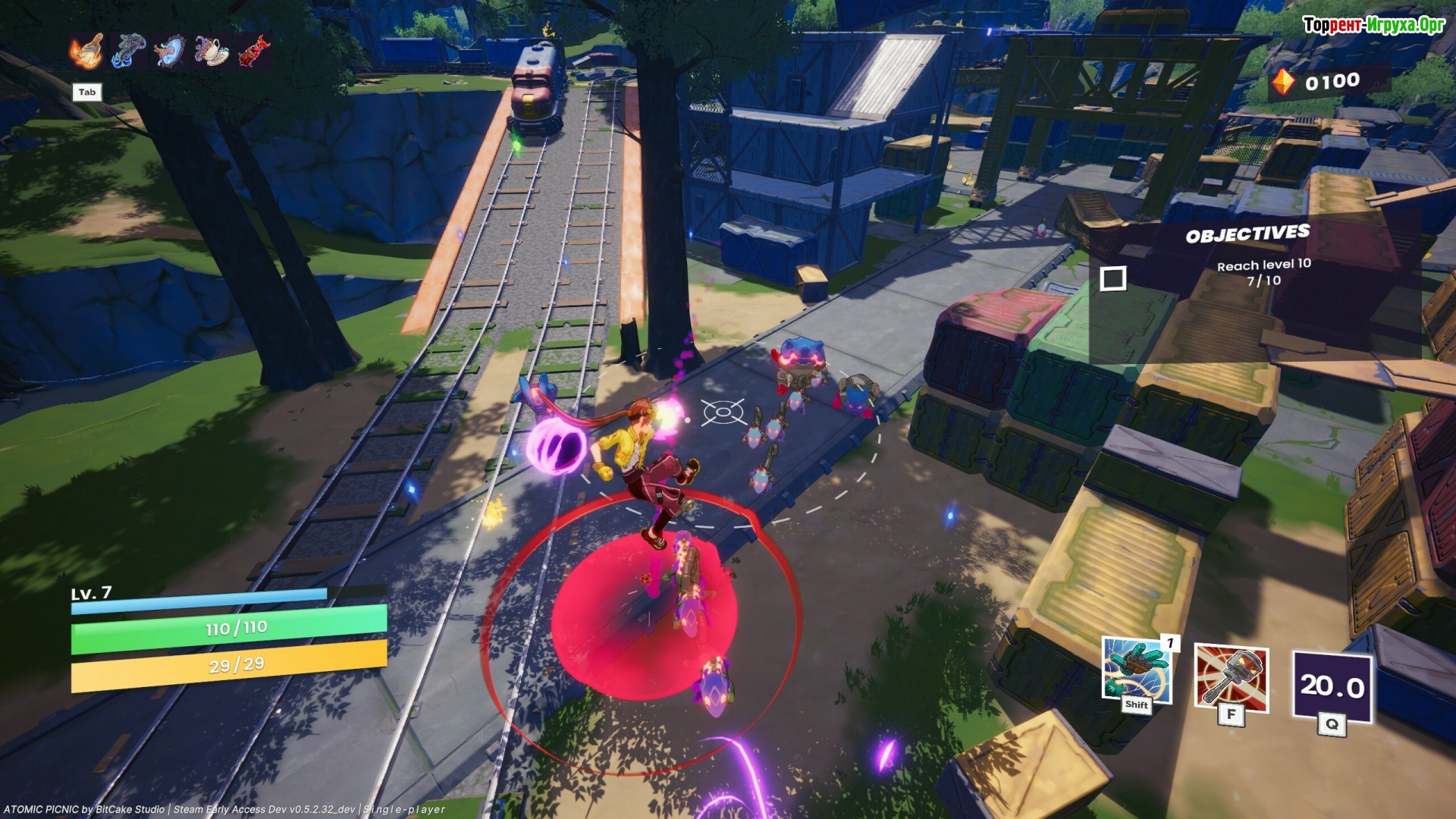 Atomic Picnic от BitCake Studio — это классический рогалайт-шутер с видом от третьего лица, выпущенный в 2024 году. В этой игре вам предстоит сражаться с многочисленными монстрами, внимательно следя за обстановкой и улучшая оружие путем накопления опыта. Чтобы выжить, важно находить оптимальные версии сборок, которые помогут эффективно справляться с каждым новым вызовом.