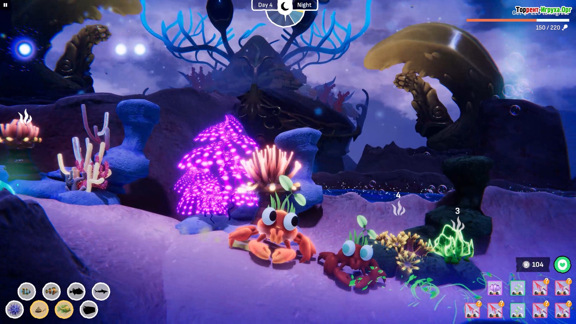 Развивайте свою крабоколонию, заботясь о крабятах и помогая им раскрыть потенциальные способности. В Crab God вы сможете обучать своих подопечных, помогать им строить коралловые рифы и противостоять внешним угрозам. Собирайте ресурсы для будущего путешествия и давайте имена обитателям колонии, превращая ее в мощное и устойчивое сообщество.