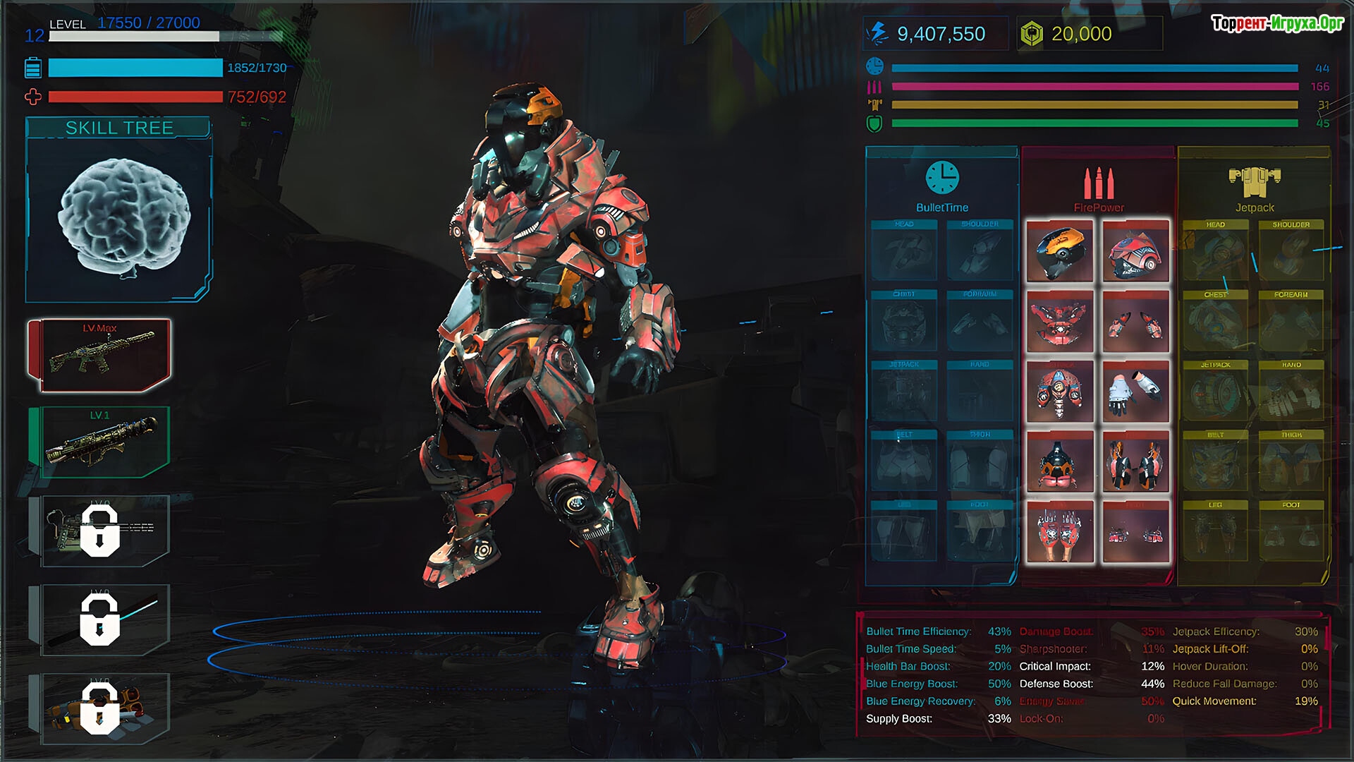 Каждое улучшение оружия и брони в этой игре помогает повысить боевые характеристики — например, увеличить мощность выстрелов, скорость замедления времени (Bullet Time) или эффективность реактивного ранца Jetpack. Такая глубокая система настройки позволяет адаптироваться к любым ситуациям и справляться с самыми опасными противниками, используя технологии будущего и собственное мастерство.