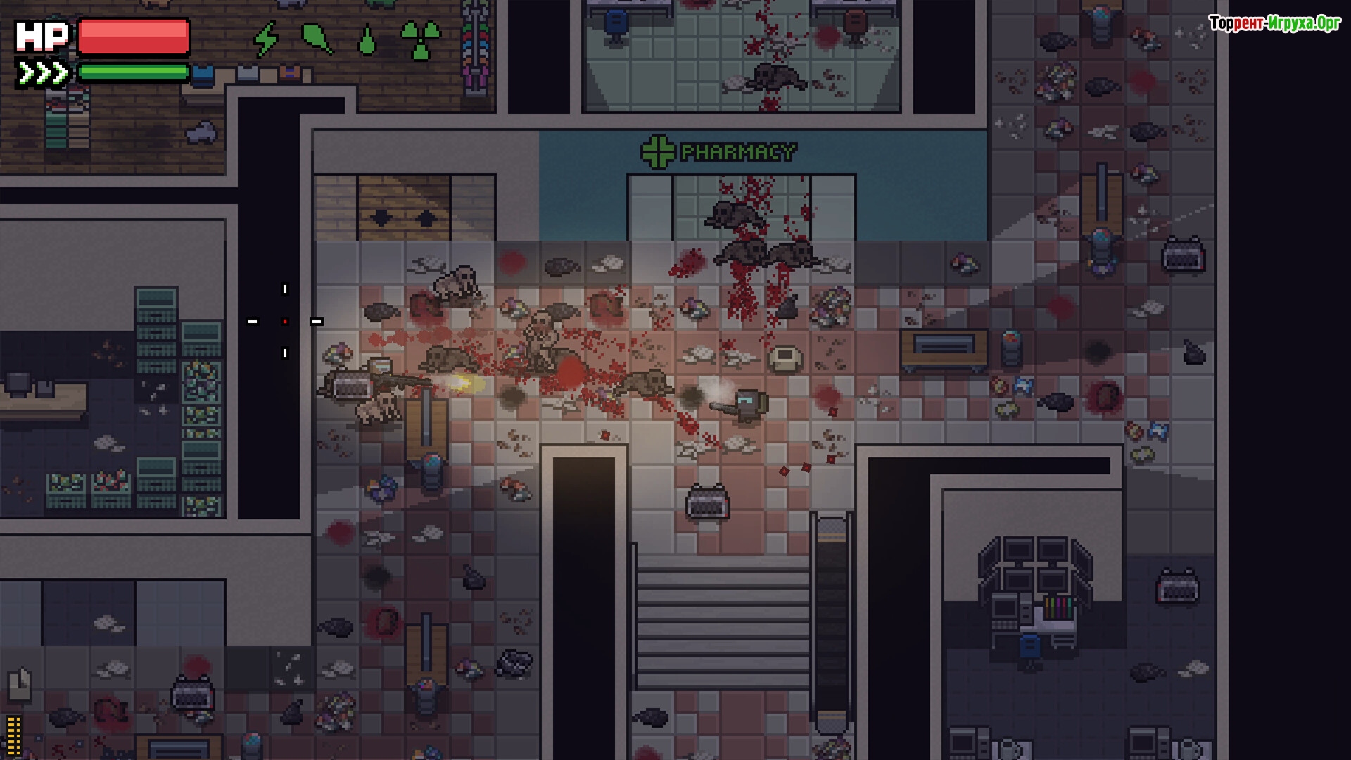- Отвратительный, жирный пиксель-арт, где все персонажи АМОГУСЫ (Особенно учёные) Что мешало разрабу сделать, хотя бы 16 бит, не пойму. 8 бит слишком жирный пиксель-арт и не смотрится симпатичным.