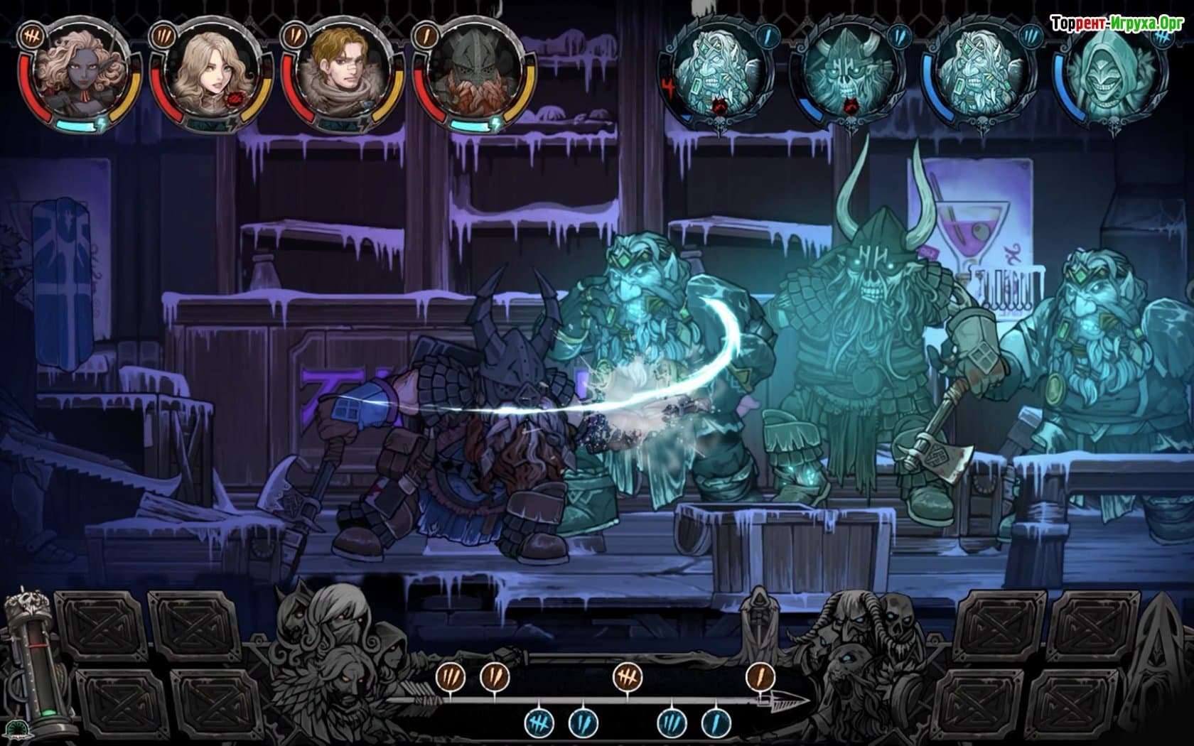 Vambrace: Cold Soul — захватывающая игра от Devespresso Games, которая погружает игроков в мрачный мир Ледовицы. Этот некогда прекрасный город теперь поглощён тьмой и отчаянием после прихода безымянного Короля Теней, чьё проклятие обрушилось на живых и на землю, окутанную вечной бурей. В таких условиях выживание кажется невозможным, и лишь немногие смогли укрыться под землёй, сохраняя надежду благодаря загадочной Эвелии Лирике.