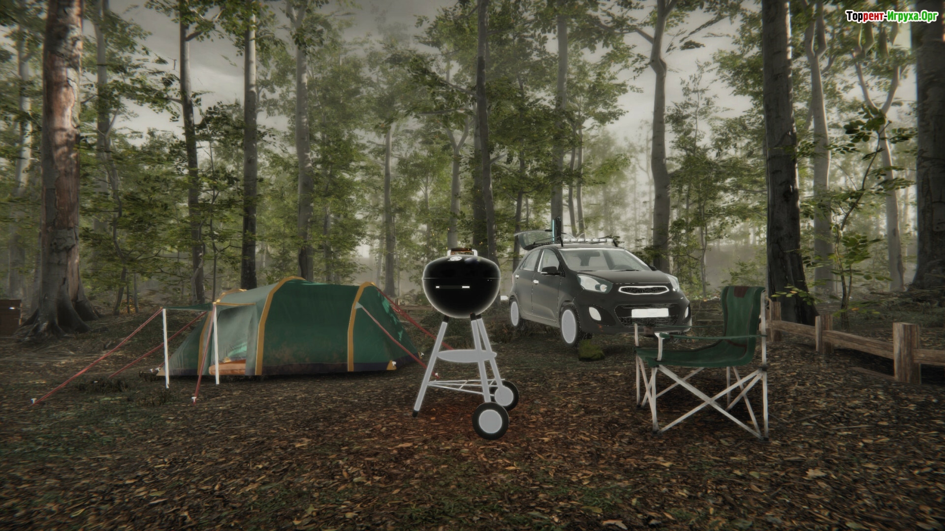 От восхода до заката игровое время сменяется естественно, а окружающая среда наполняется звуками природы, создавая глубокое погружение в мир кемпинга. В этом открытом мире доступно разнообразное туристическое снаряжение — палатки, фонари, кухонные принадлежности — что помогает сделать каждое приключение реалистичным и увлекательным.