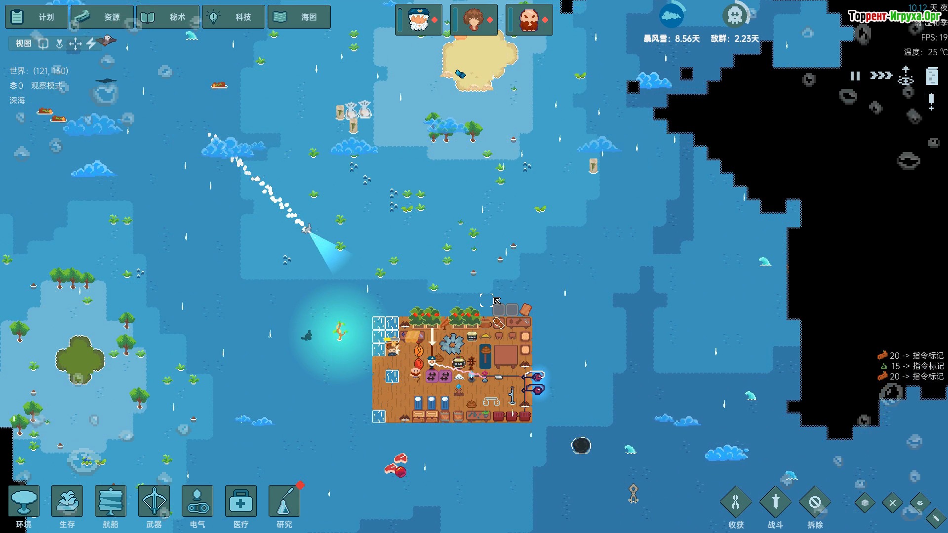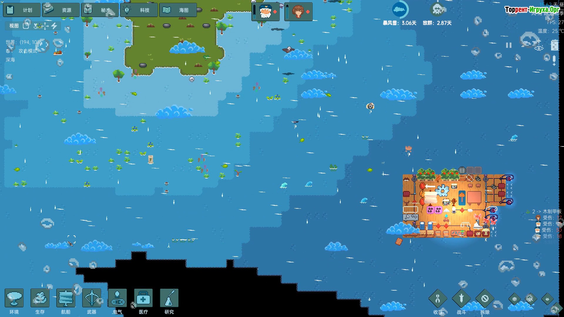 Начните с постройки первого небольшого плота и неспешно плывите по просторам океана. По пути собирайте древесину, расширяйте свою базу, строя кухню, навесы и зоны отдыха. Находите проплывающие водоросли и ловите рыбу, чтобы поддерживать запасы пищи. Собирайте все полезное, не выбрасывайте «мусор», ведь его можно продать другим выжившим, превращая каждую находку в ценность.