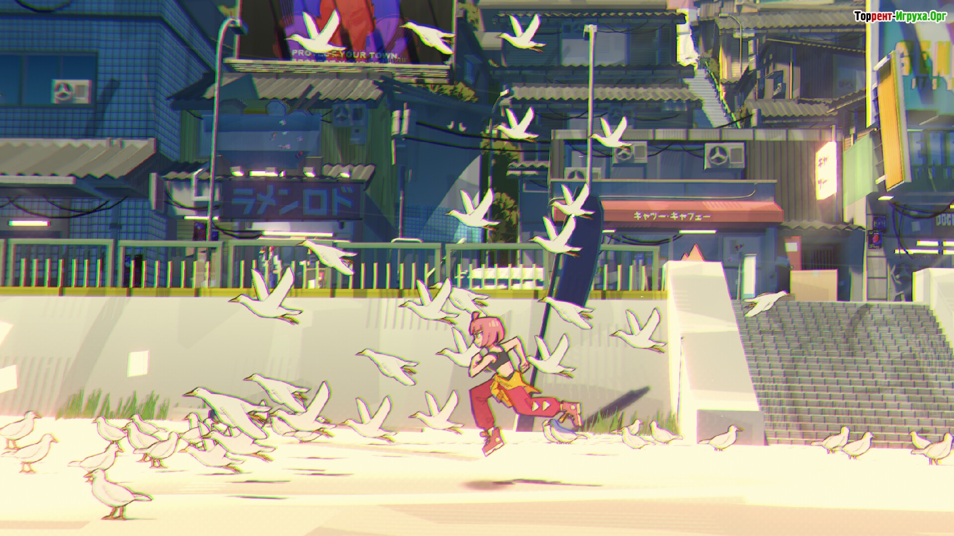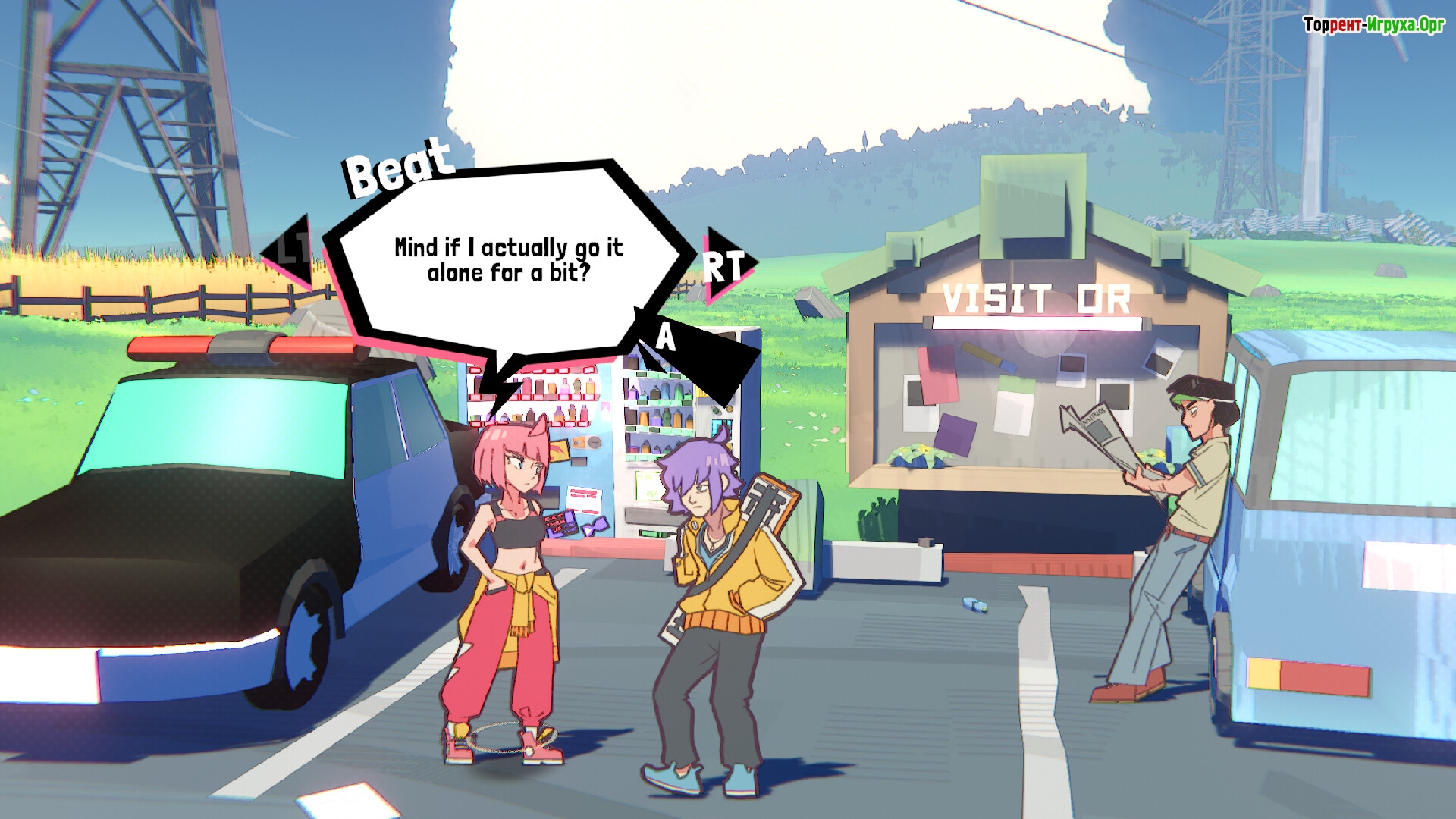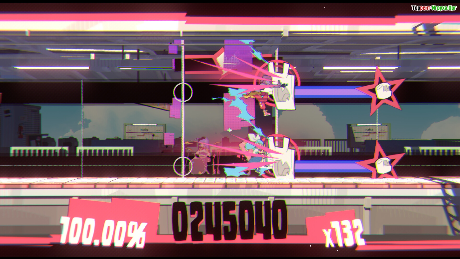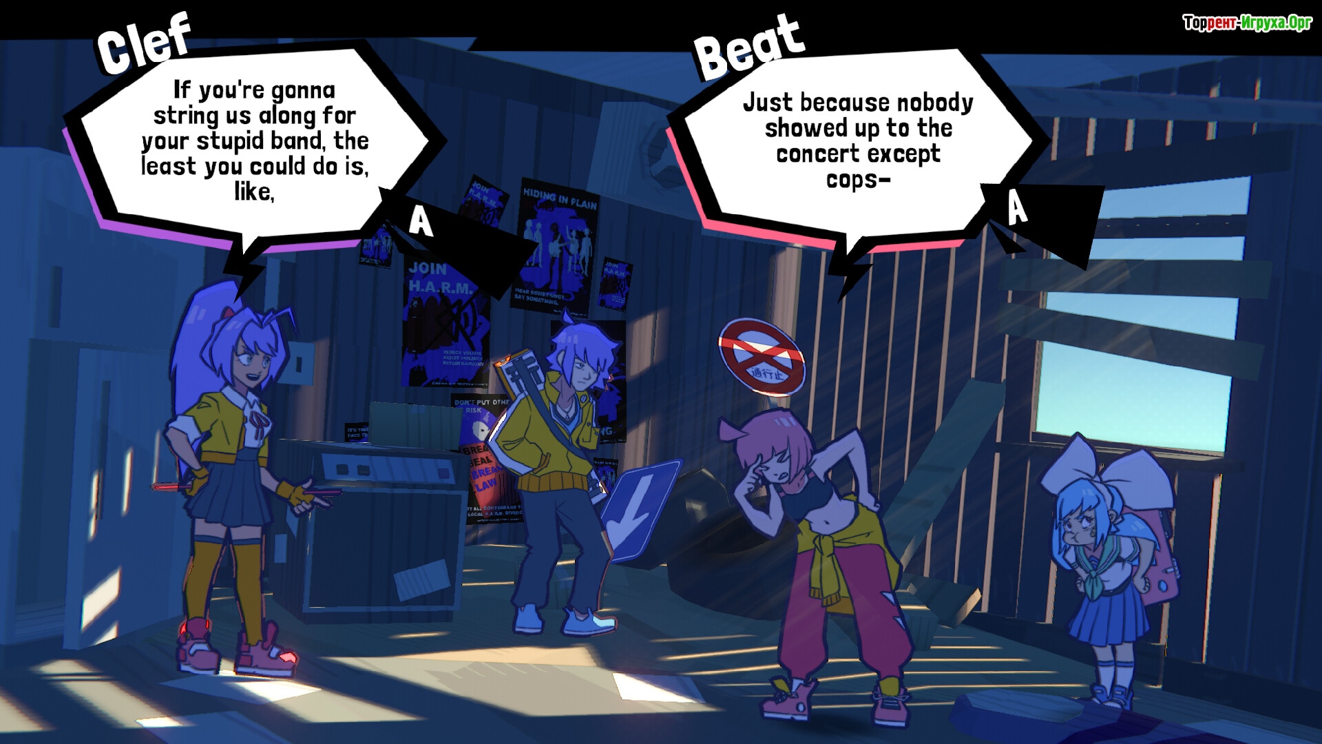 Главный герой — девушка по имени Бит с розовыми волосами, которая проводит значительную часть времени, исследуя экран и постепенно погружаясь в ритм игры. Вокруг нее постоянно находятся полицейские, что добавляет напряжения и динамики, особенно учитывая, что protagonist регулярно заводит друзей, вызывая недовольство копов. В этом музыкальном мире гораздо больше, чем просто нажатия в такт — здесь важна каждая мелодия и взаимодействие с окружением.
