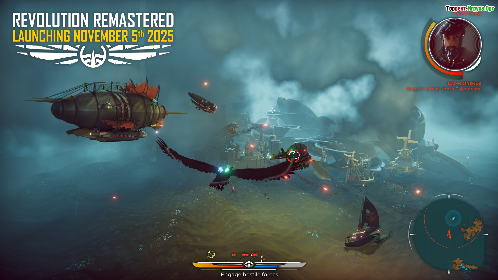 The Falconeer — это увлекательная игра, разработанная Tomas Sala и выпущенная в 2020 году, которая приглашает вас исследовать уникальный мир Урси. Здесь весь ландшафт покрыт водой, а города и материки представлены летающими крепостями и большими кораблями. В роли главного героя вы поднимаетесь на спину огромного орла, чтобы раскрыть мрачные тайны таинственной организации, угрожающей спокойствию этого мира.