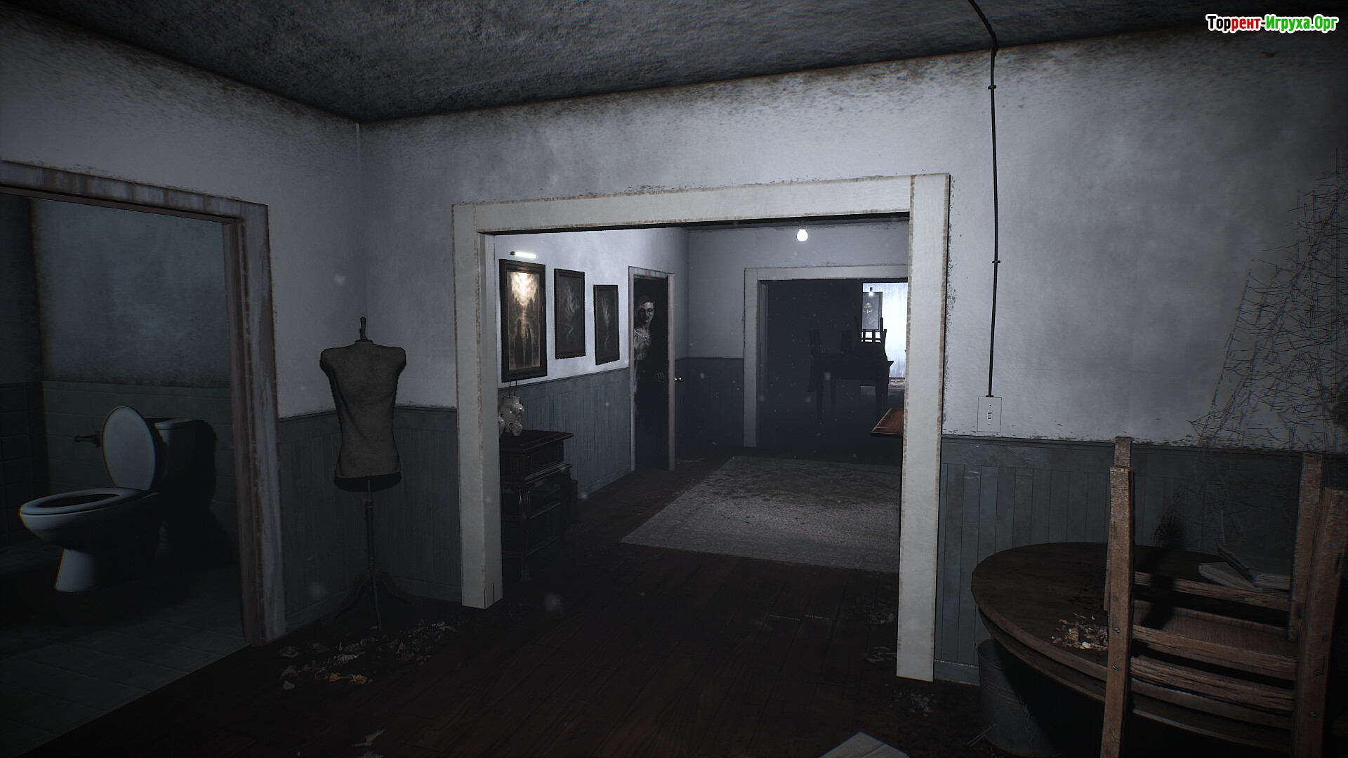 Внутри дома ощущается постоянное наблюдение, которое усиливается с каждой комнатой. Архитектура здания искажена и дезориентирует, коридоры кажутся бесконечными, а звуковое оформление подчёркивает пустоту и уязвимость. Игра мастерски играет со светом и тенями, создавая иллюзию невидимого присутствия — дом словно живой и постоянно заставляет сомневаться в реальности происходящего.
