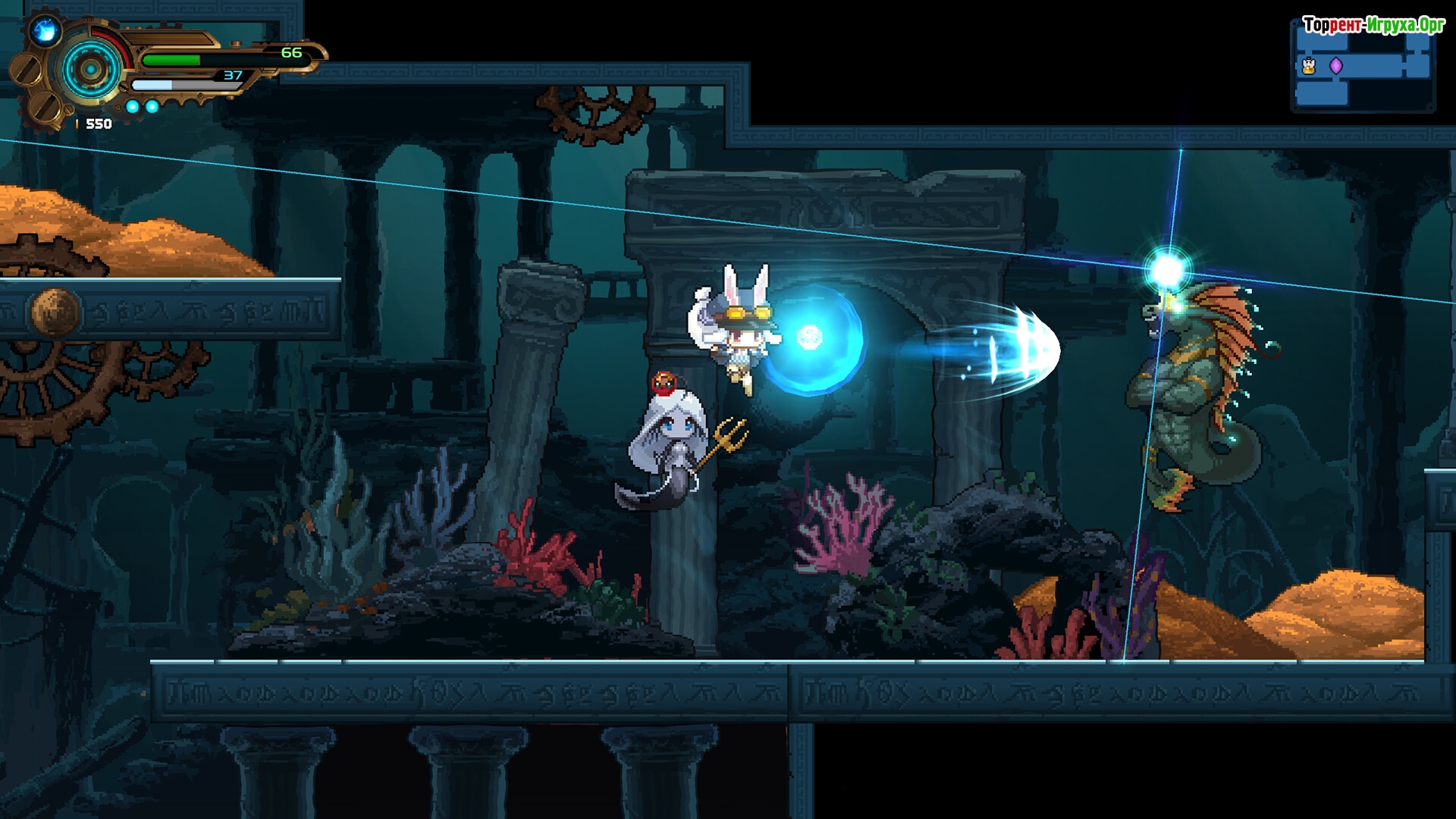 Погрузитесь в атмосферу разнообразного мира, где переплетаются классические элементы метроидвании, пулемётные сражения и эпические баталии. Герои с животными ушками, демоны и ангелы добавляют уникальности игровому процессу, а обновление снаряжения позволяет адаптировать стиль прохождения под себя.