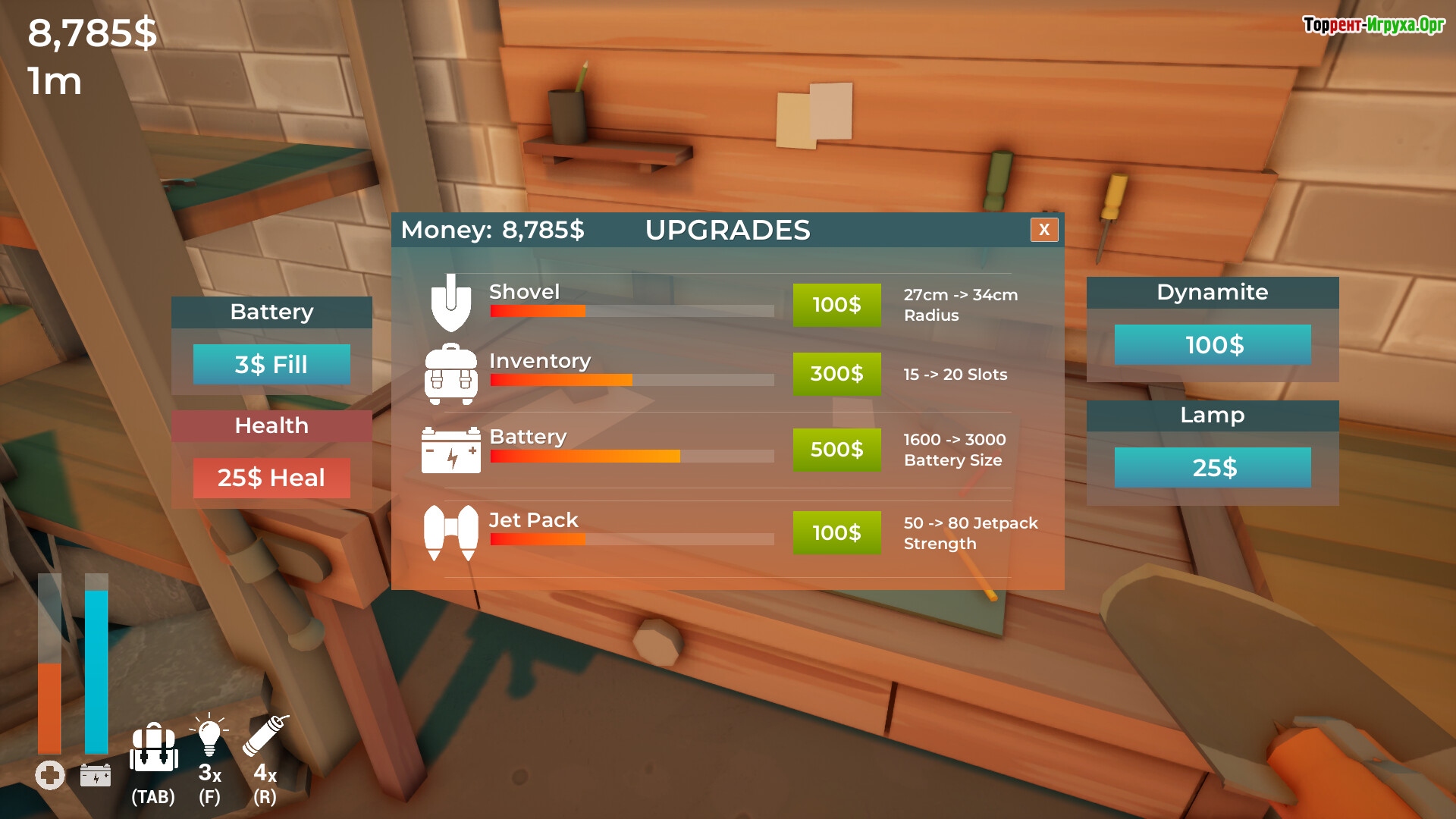 В игровом сюжете вы — владелец недавно купленного дома с минимальным набором инструментов. Пошагово копая сквозь слои грунта, можно находить ценные ресурсы для продажи. Полученную прибыль разумно вкладывать в модернизацию инвентаря: будь то более продвинутая лопата или мощный бур. Такие улучшения позволяют исследовать глубины, которые ранее казались недосягаемыми, открывая новые возможности для добычи.