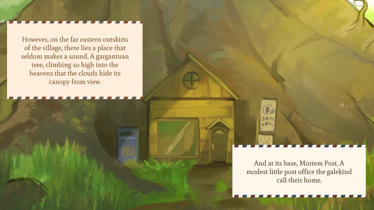 В данной игре вам предстоит окунуться в мир Mortem Post, уникального почтового отделения, расположенного внутри громадного дерева, где курьеры занимаются доставкой писем от ушедших. Каждое из этих посланий является своеобразной «капсулой воспоминаний», сохраняющей недосказанные признания. Вместе с персонажами Рейном и Милой вам предстоит искать забытые слова, которые так и не были произнесены при жизни.