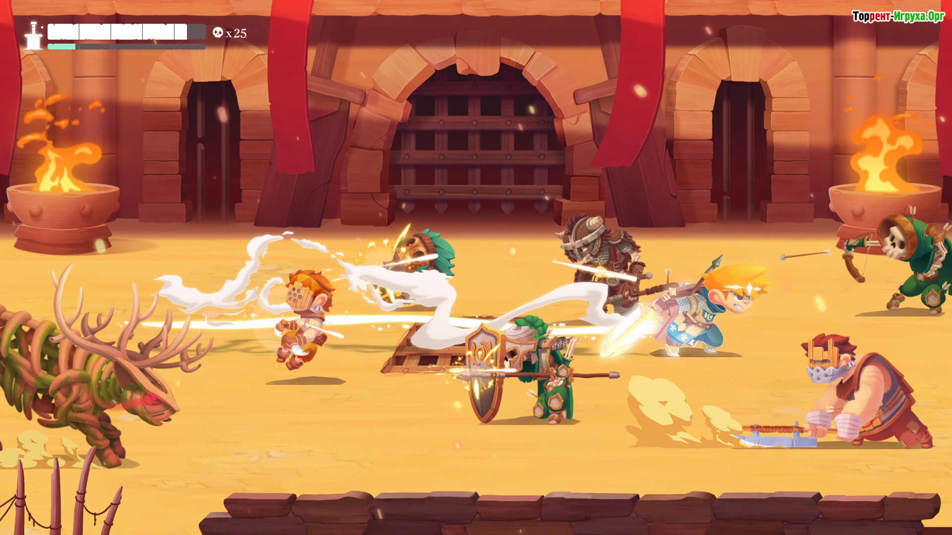 - Динамичный геймплей. (В отличие от "Кастело"-подобных игр, ЭТА на голову выше всех клонов. Почему? Потому что тебе интересно драться с врагами!!! Каждый из противников владеет уникальным мувсетом, пусть и простеньким, но когда с 20 таких врагов на экране и у каждого "простенький" мувсет, становится по настоящему интересно эскейпиться от мили-бойцов, чтобы добежать сломя голову к толпе лучников, которые шотят тебя с другого конца арены)