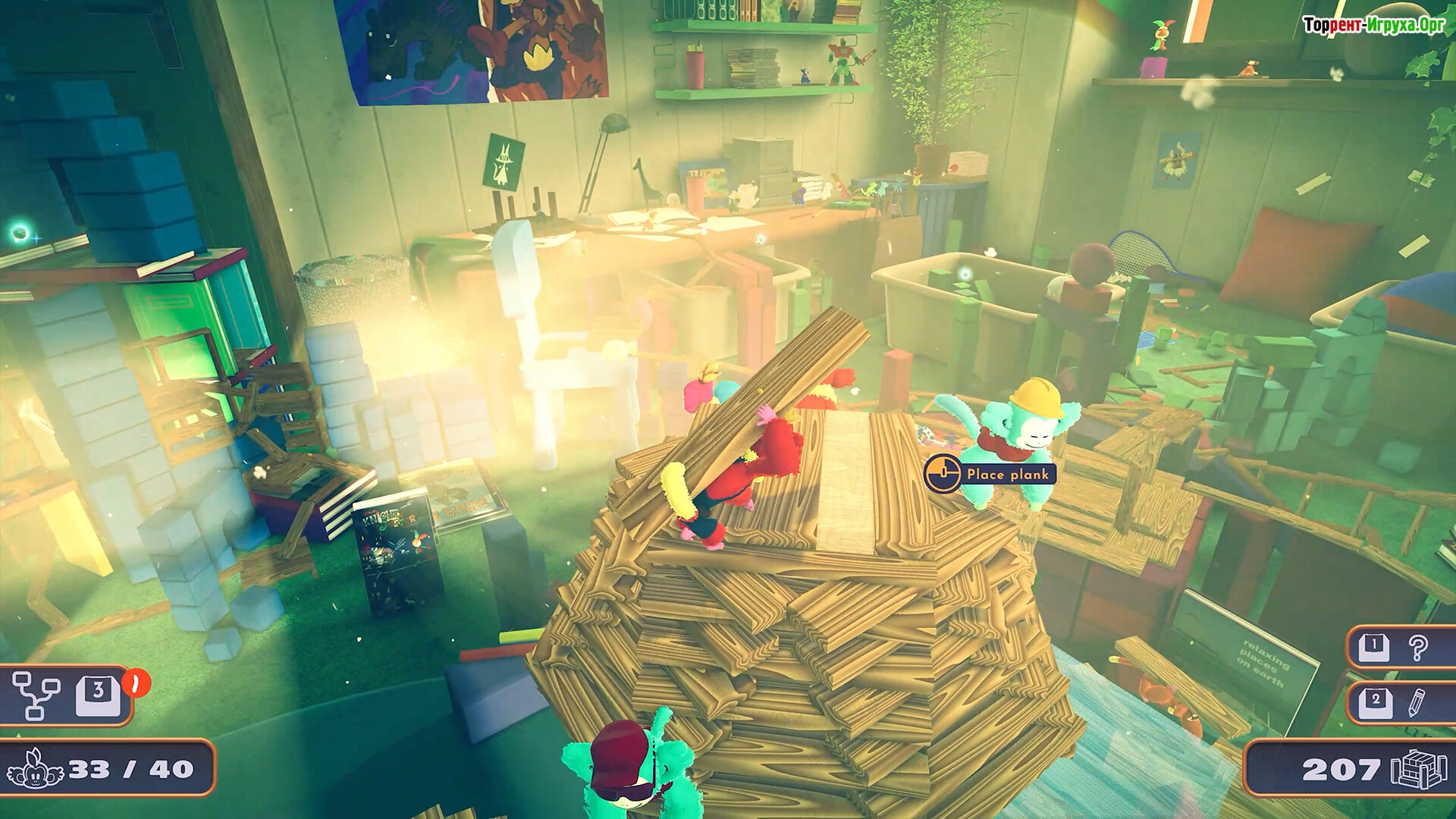 Этот мир игрушек непременно понравится любителям мягких приключений, которые любят поддерживать порядок и выполнять различные задания. Чтобы начать свое путешествие и воплотить все задумки в жизнь, достаточно скачать Plank Builders через торрент на русском языке бесплатно. Погружайтесь в игру, чтобы открыть для себя разнообразие ресурсов и уникальных игровых объектов, создавая неповторимый мир в большой комнате с игрушками.
