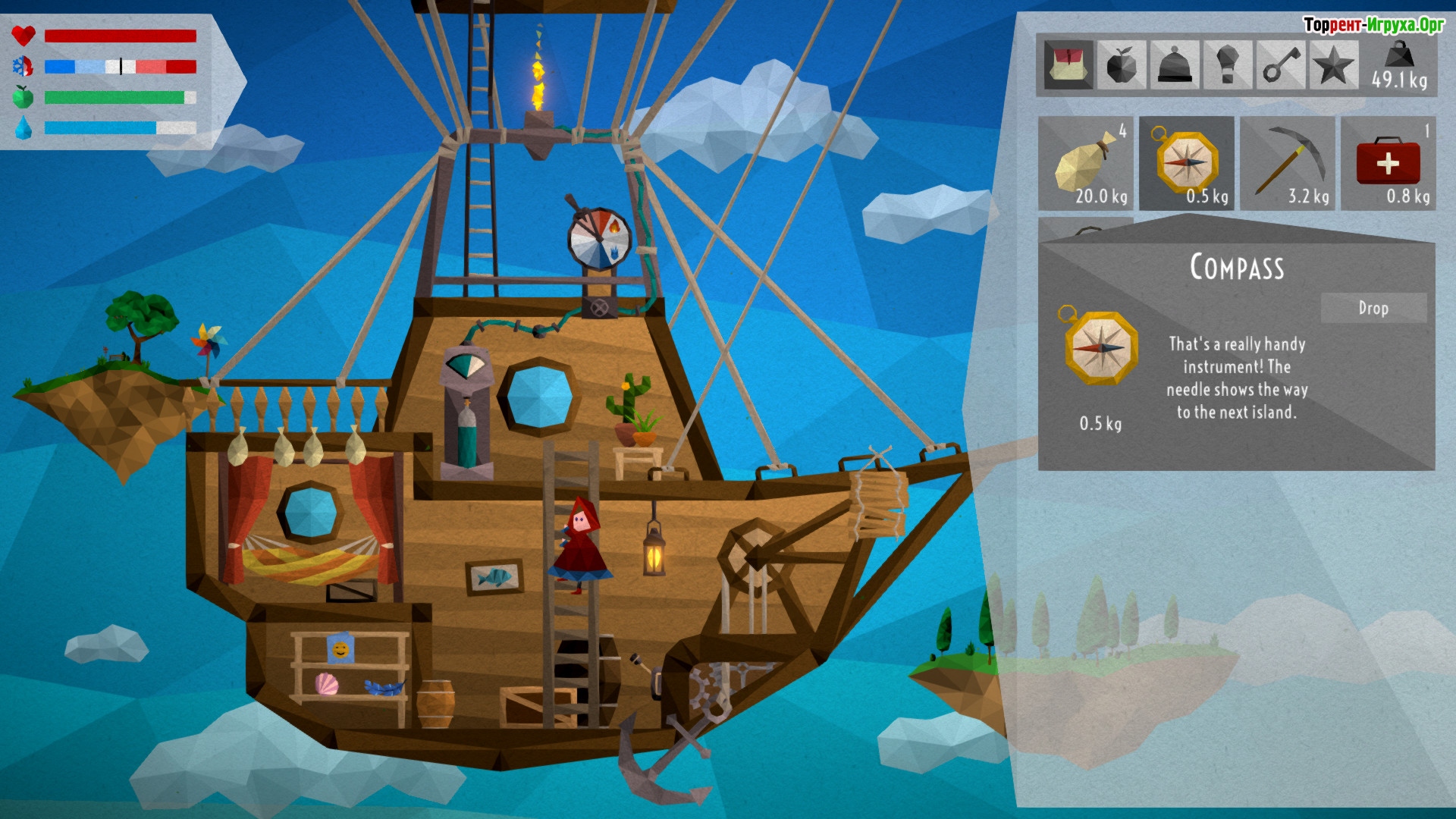Действие уходит в необычный и немного фантазийный мир, где парящие острова и постоянный западный ветер создают уникальную атмосферу. Ваша задача — вместе с Керли доставить таинственное письмо его адресату, что добавляет цель и ощущение смысла в размеренное плавание на воздушном шаре.