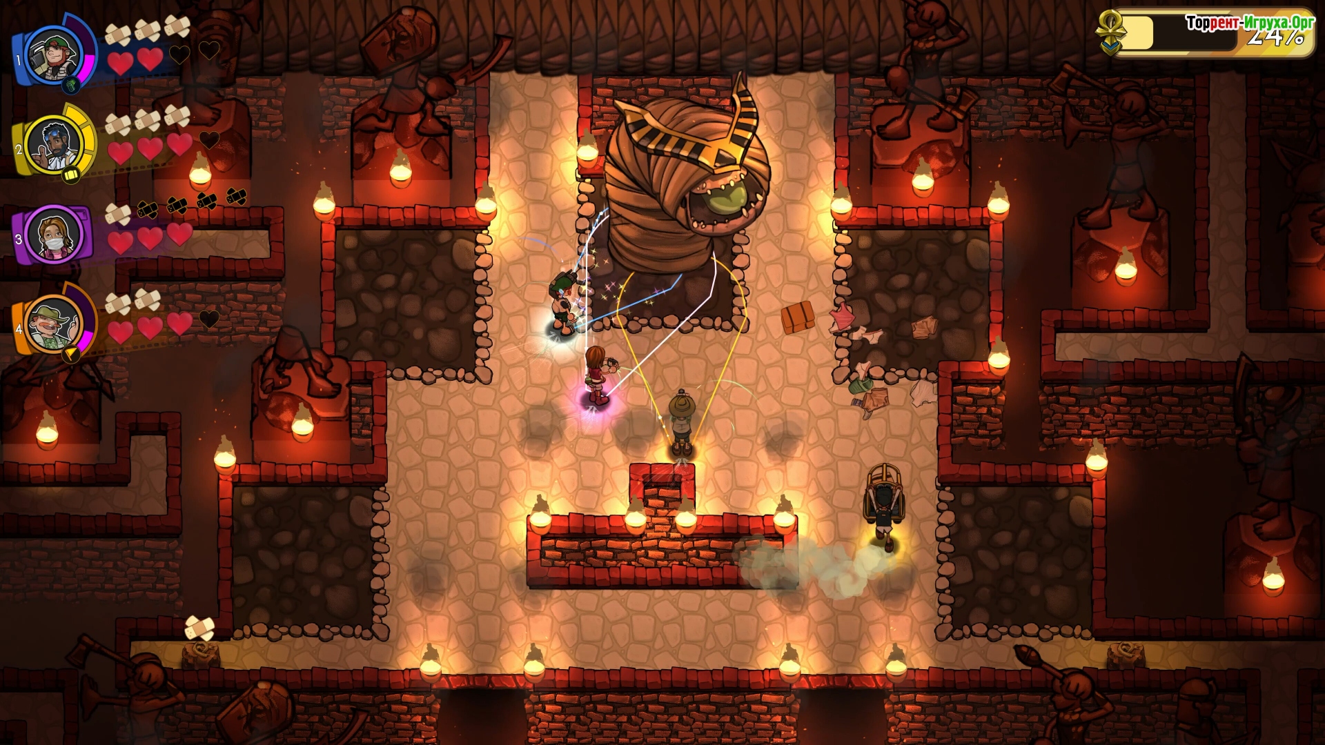 Run From Mummies — это уникальная игра от Lost Turnip, LLC, вышедшая в 2024 году, в которой вам предстоит примерить на себя роль туриста, исследующего древние пирамиды. Вас ждёт как одиночное прохождение, так и совместные приключения до четырёх игроков, где убегать от мумий вовсе не обязательно. Игра предлагает захватывающий опыт с видом сверху, позволяя окунуться в атмосферу исследования и тайн затерянных во времени гробниц.