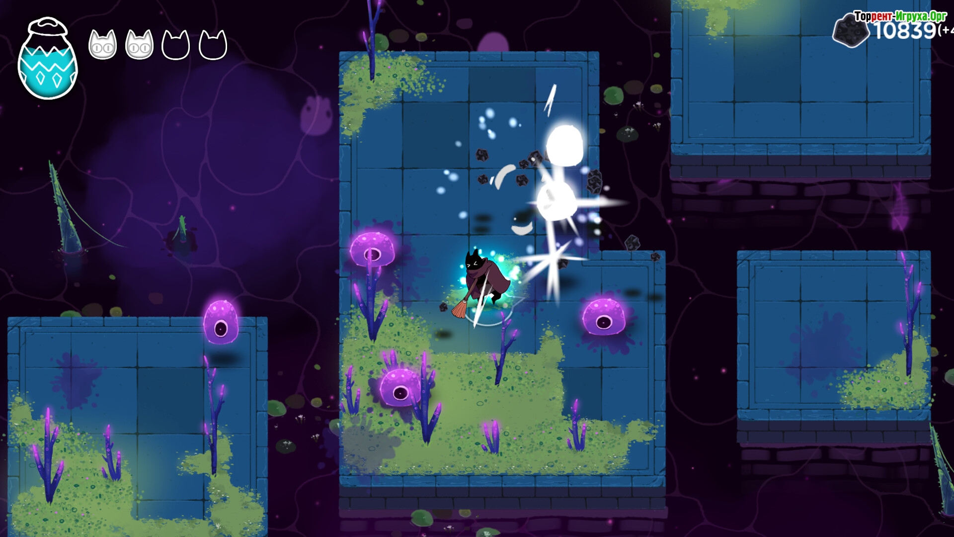 Crypt Custodian от разработчика Kyle Thompson предлагает погрузиться в необычную метроидванию, вдохновленную легендарной серией Zelda. В этом приключении вы берете на себя роль забавного кота, который после смерти оказывается во дворце загробного мира. Встреча со стражем посмертия оборачивается изгнанием, и теперь ваш герой навечно становится уборщиком дворца.