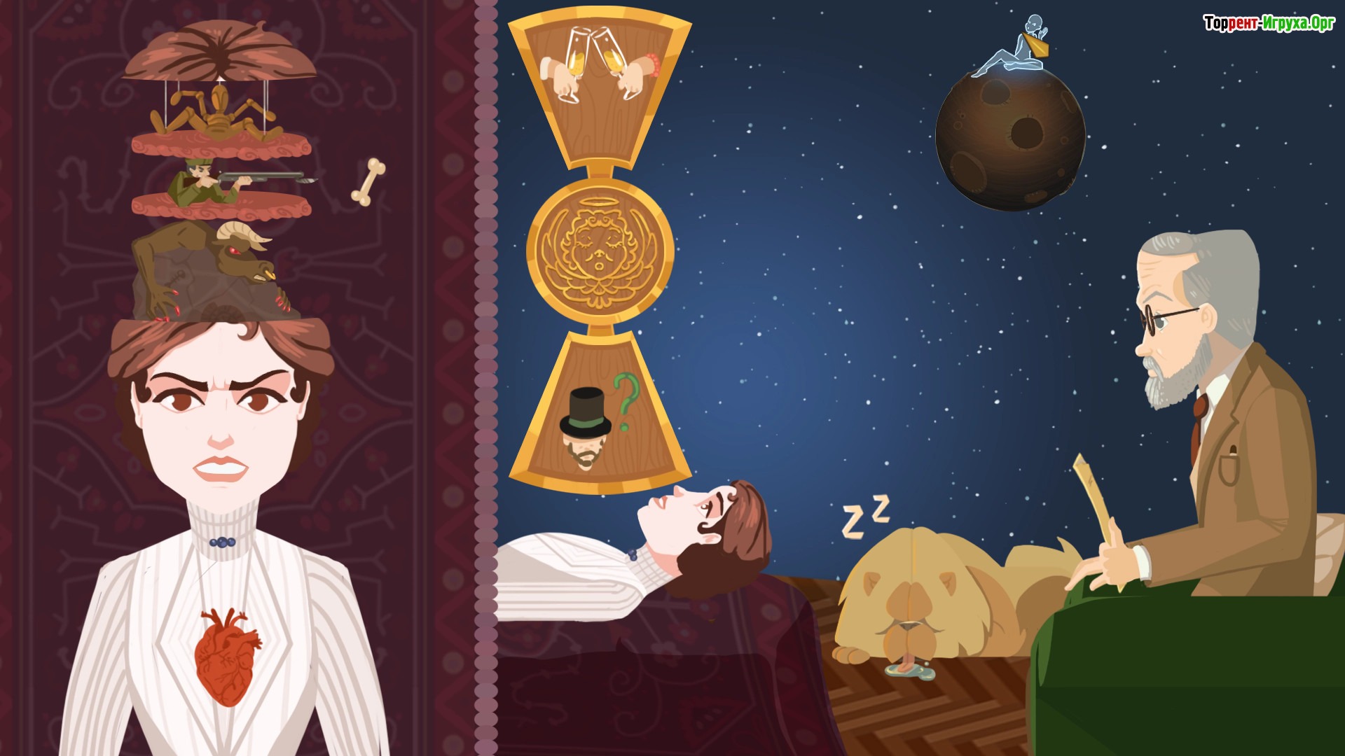 В Freud's Bones особое внимание уделяется взаимодействию с персонажами и их внутренними конфликтами. Ваша задача — тщательно анализировать психологические состояния пациентов Фрейда, помогая им преодолевать сложности и тревоги. Эта приглашающая к размышлениям игра предлагает глубокое исследование разных типов личности и психических процессов, что делает игровой процесс особенно увлекательным для поклонников психологических приключений и головоломок на ПК.