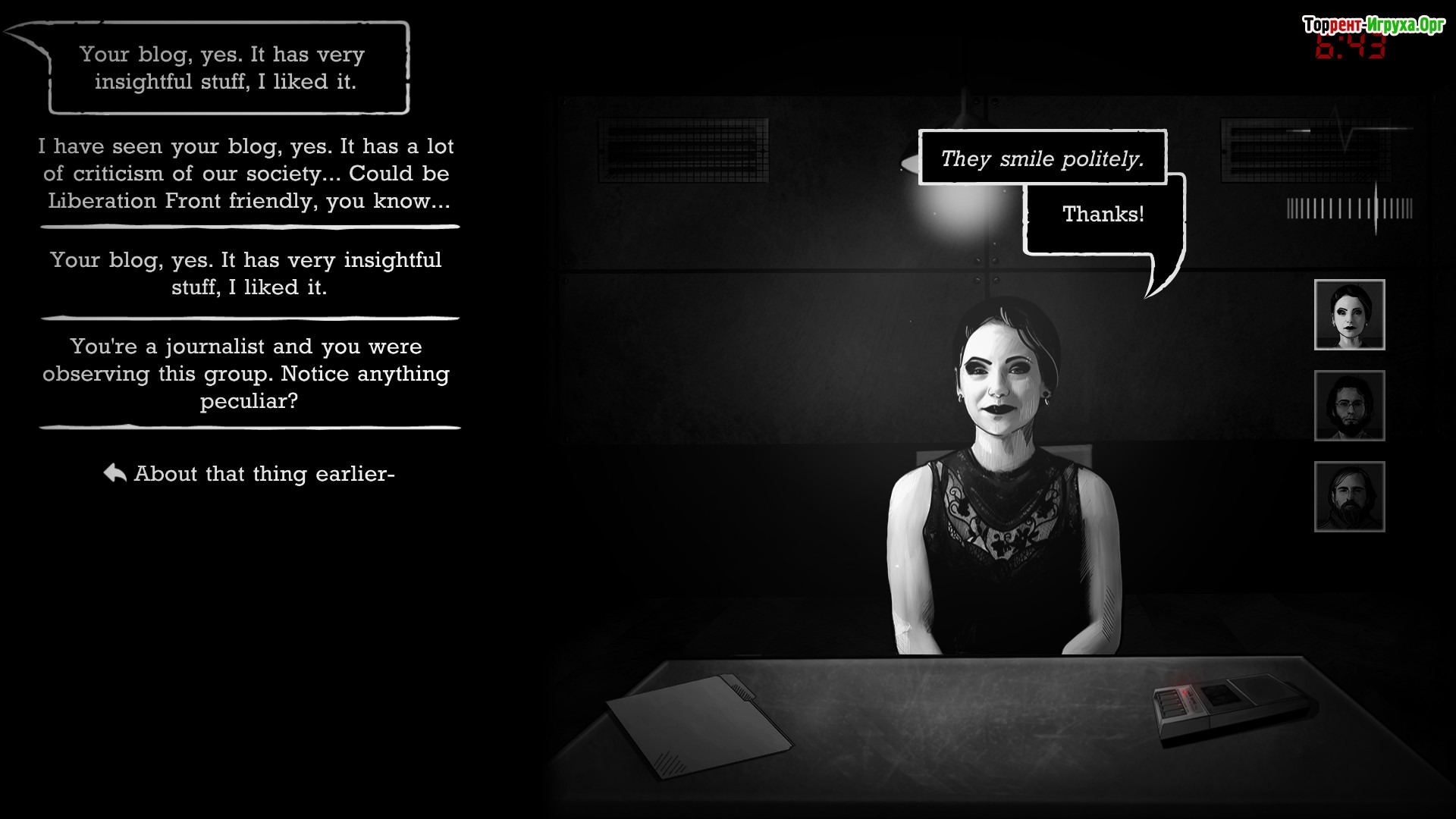 Interrogation: You will be Deceived — это захватывающая приключенческая игра от разработчика Critique Gaming, выпущенная в 2019 году. Она сочетает в себе элементы детективного квеста и головоломки, погружая игрока в атмосферу расследования серьёзных преступлений. Вы возглавите отряд, противостоящий террористической группировке «Фронт освобождения», которая планирует серию диверсий с серьёзными последствиями.